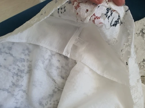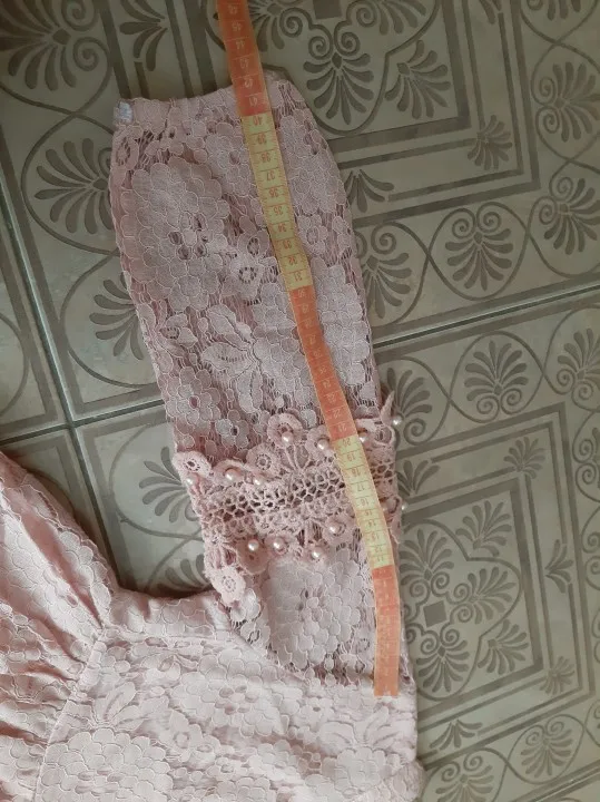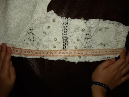 Размер 12(150) на возраст 8 лет рост 127см . Во первых замеры не соответствуют таблице продавца, платье короче , чем должно быть. На рост 127см получается талия завышена , но при этом сильно широкая. Платье хоть и сшито вполне качественно, но длина не пропорцианальна ширине выходит, и размерной сетке не соответствует. Вернула по спору часть денег, попробую найти подходящее кружево и вшить в пояс.
