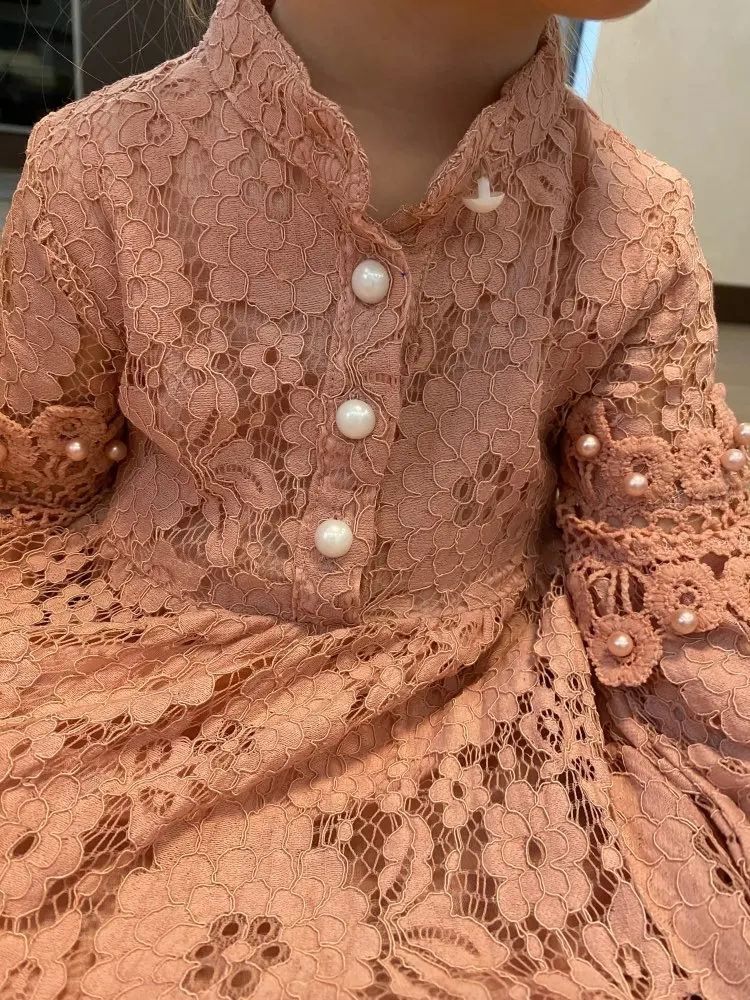 Кружевное платье в английском стиле, для девочек 3, 4, 6, 8, от 10 до 12 лет, с длинными рукавами и жемчужинами, весна-осень 2021