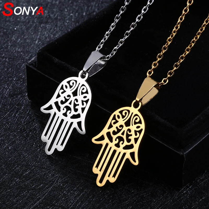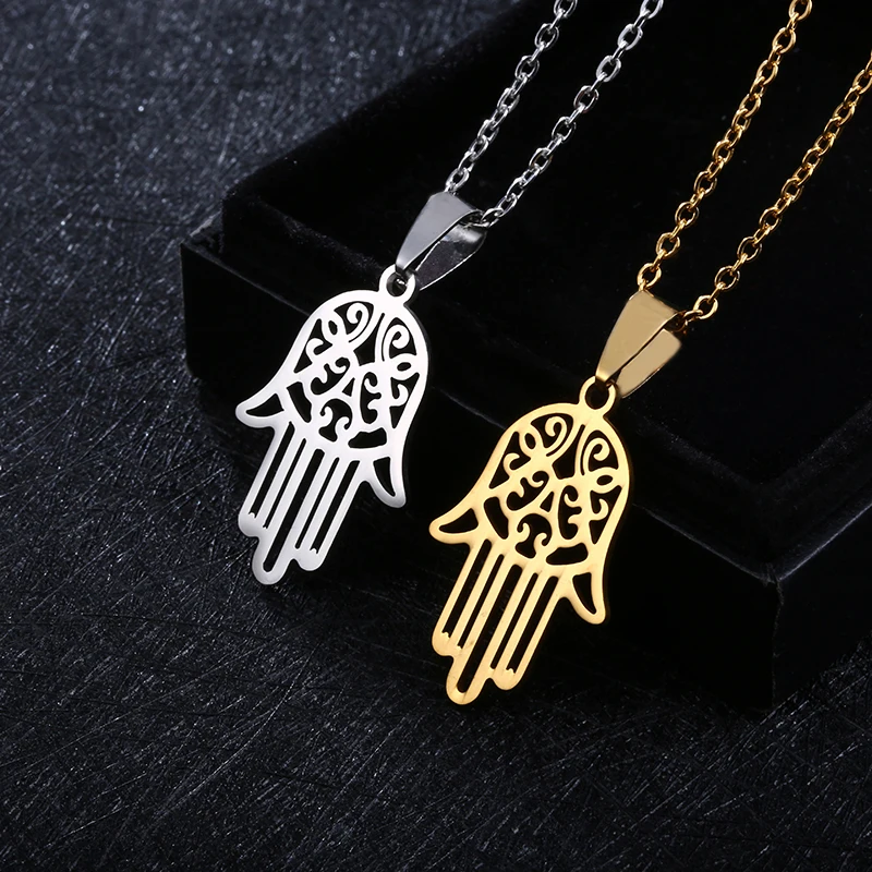 Цепочка с подвеской рука хамсы, из нержавеющей стали