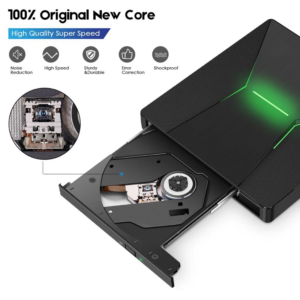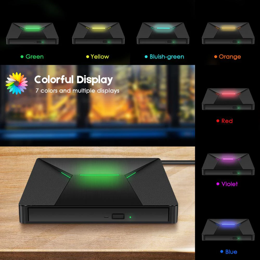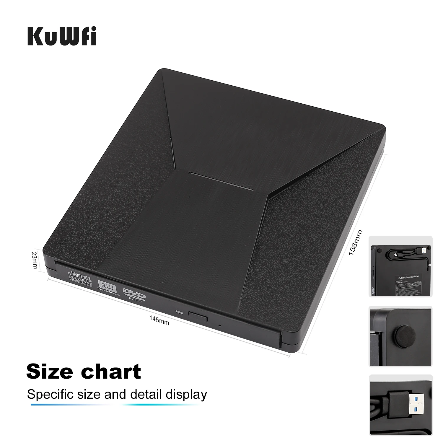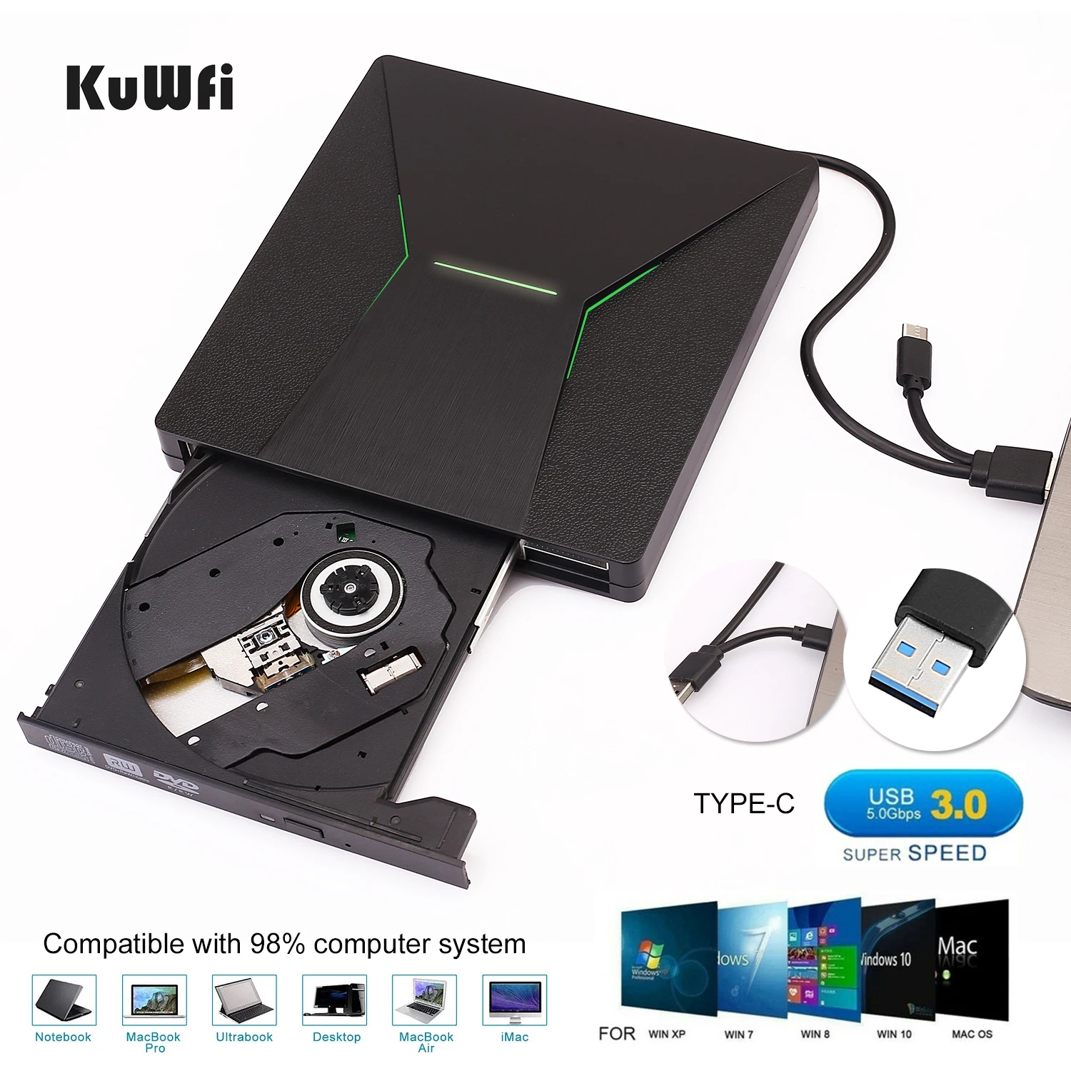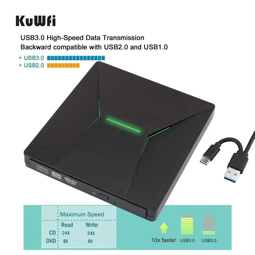 Портативный высокоскоростной DVD-проигрыватель KuWfi USB 3.0 Type-C +RW с Цветной подсветкой, DVD-проигрыватель для MacbookWindow OS компьютера
