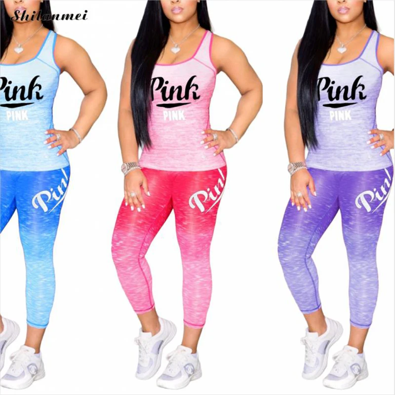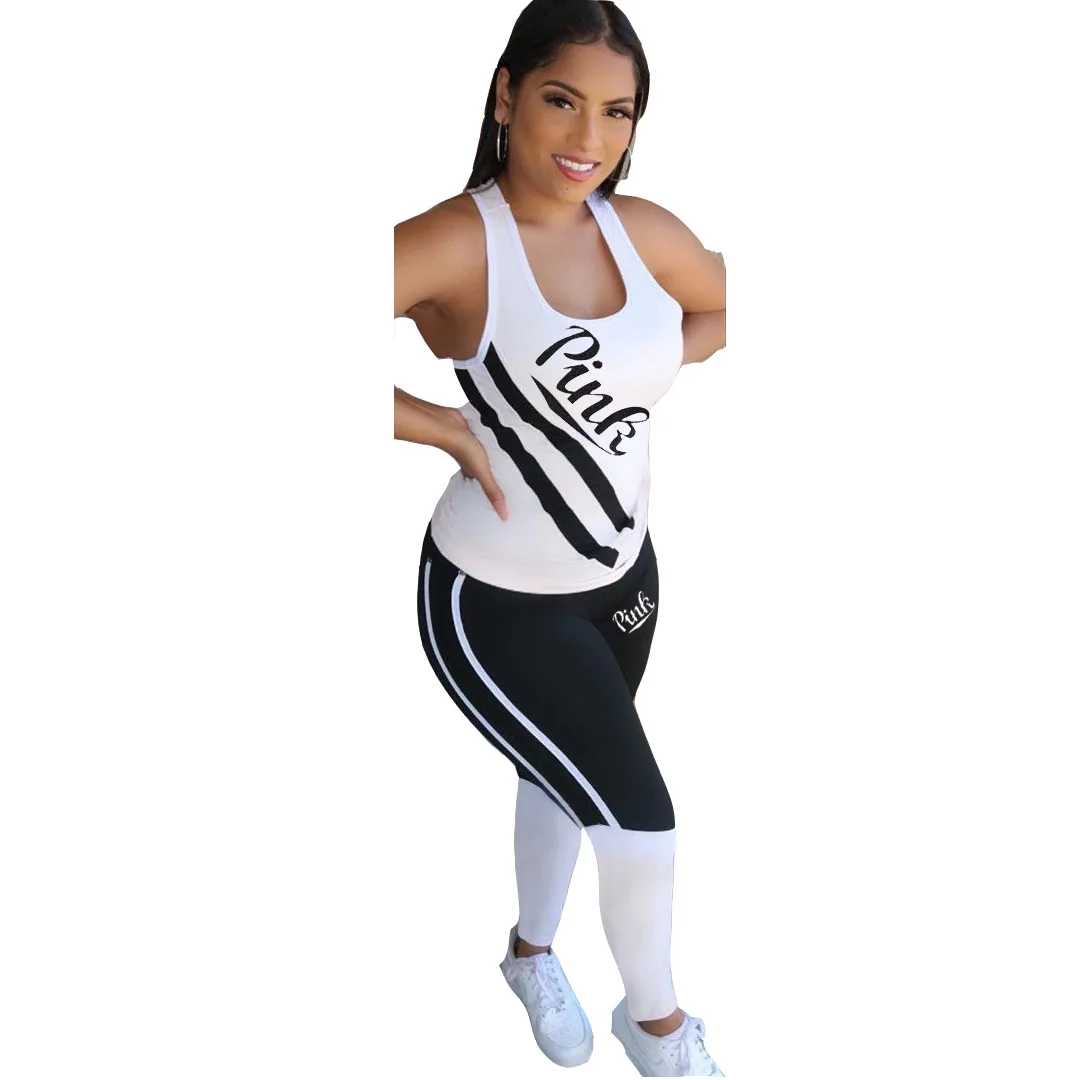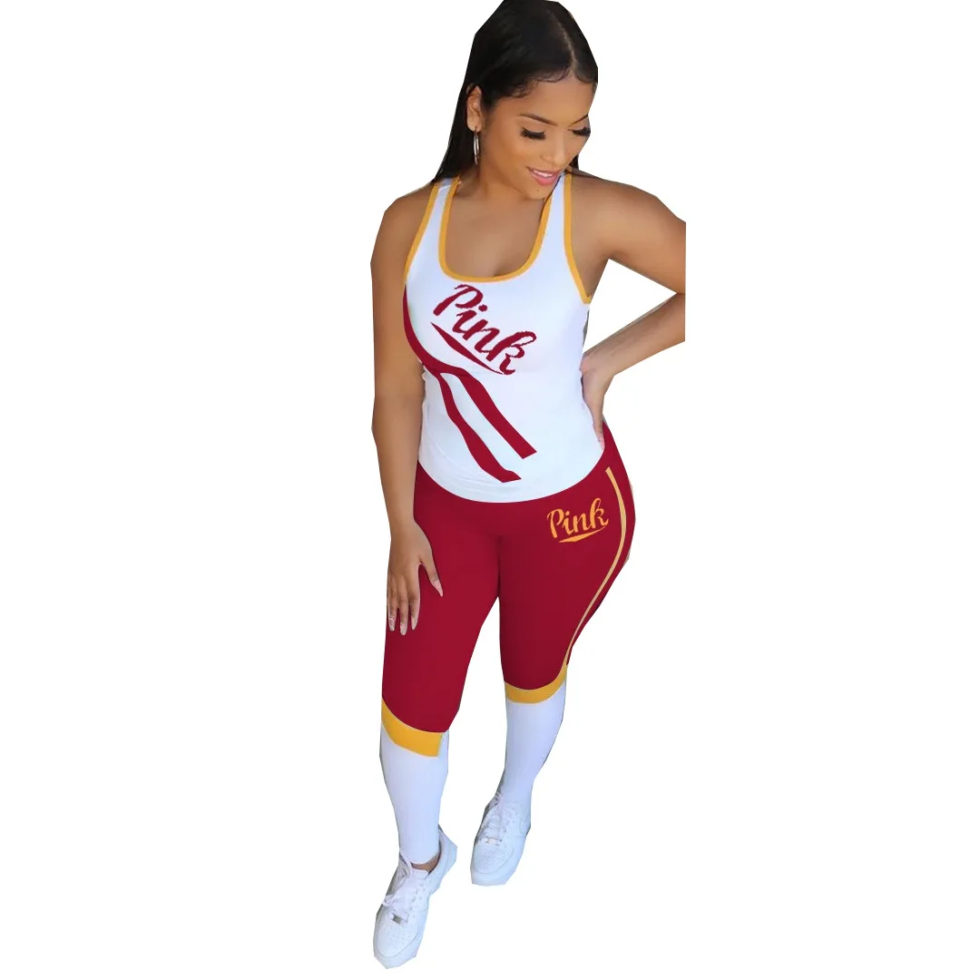 Женский спортивный костюм с принтом букв, Розовый Повседневный облегающий костюм из двух предметов, весна-лето 2022