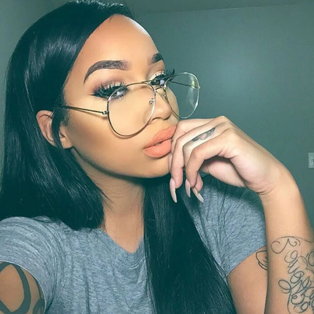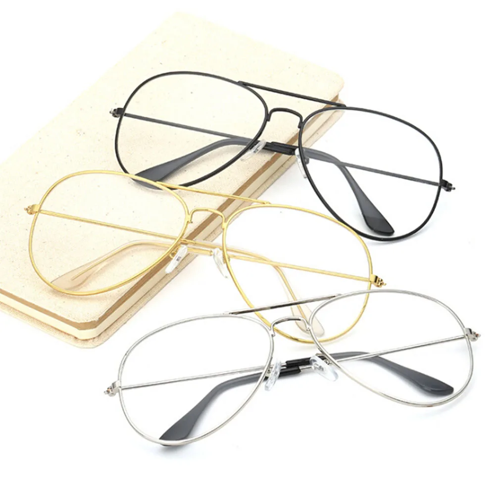 Очки унисекс в стиле ретро с прозрачными линзами, с плоскими зеркальными линзами, в металлической оправе, большие круглые чёрные, серебристые, золотистые декоративные