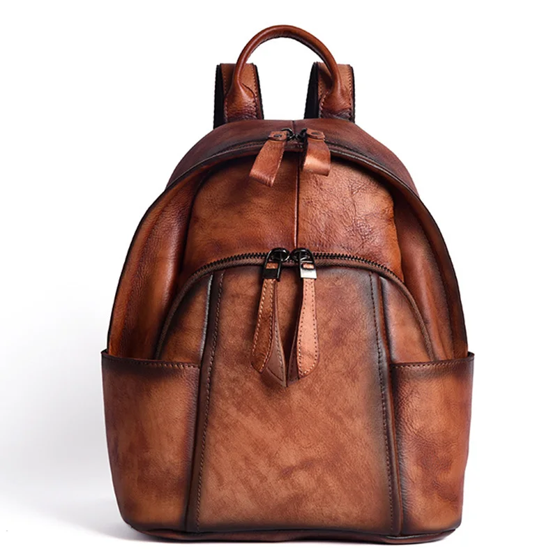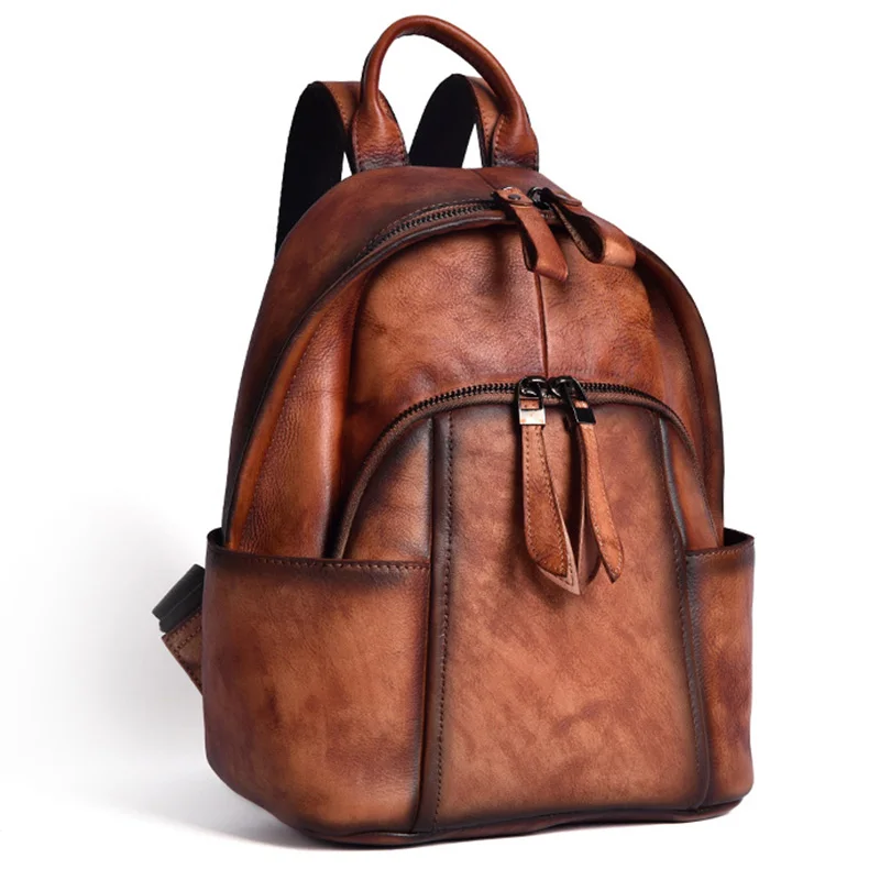 Женский рюкзак из натуральной кожи, винтажный маленький ранец из воловьей кожи, школьные сумки для книг