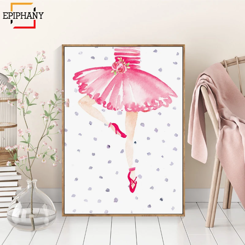 Танцевальная детская стена искусство розовая балерина холст картина для девочек декор комнаты балет скандинавский стиль девочка мультфильм картина для спальни