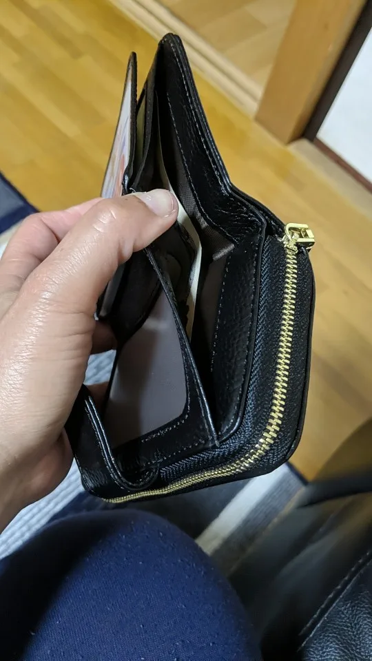 Кошелек выглядит очень прилично, однако пользоваться им неудобно. Я надеялась класть монеты в отделение на молнии, справа или слева от карт, однако там дно сквозное, и монеты проваливаются на недосягаемое дно.