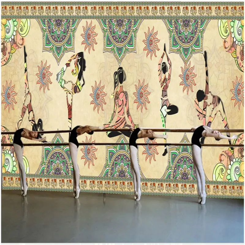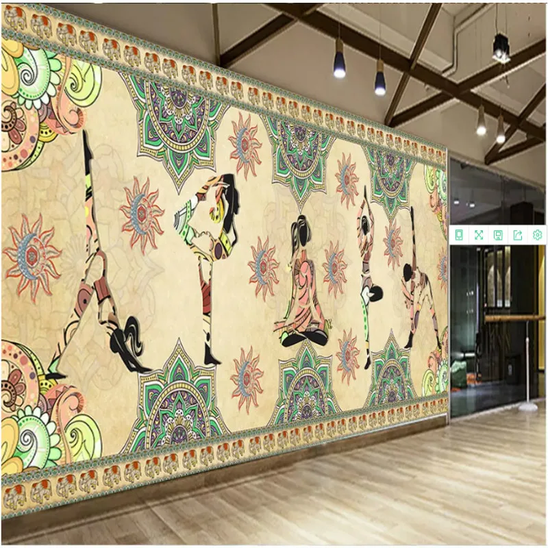 Настенная бумага на заказ в юго-восточном азиатском стиле, 3D, для йоги, студии, танцев, студии, Фреска для здоровья, клуба, тренажерного зала, музея, промышленный декор, Настенная бумага