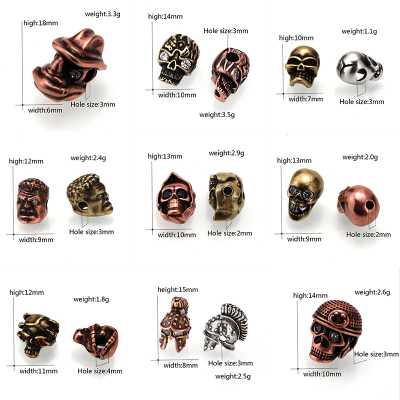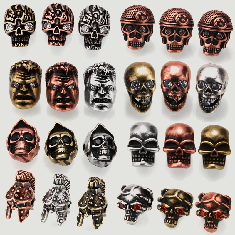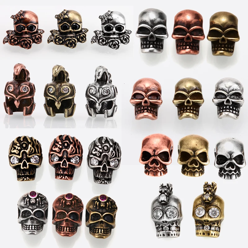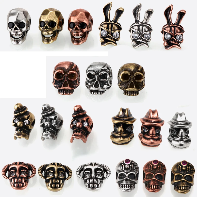 Бусины в виде черепа для самостоятельной сборки, микрозакрепка, бусины из фианита, античные медные бусины из чистого циркония для изготовления ювелирных изделий, браслетов, бусины из Паракорда