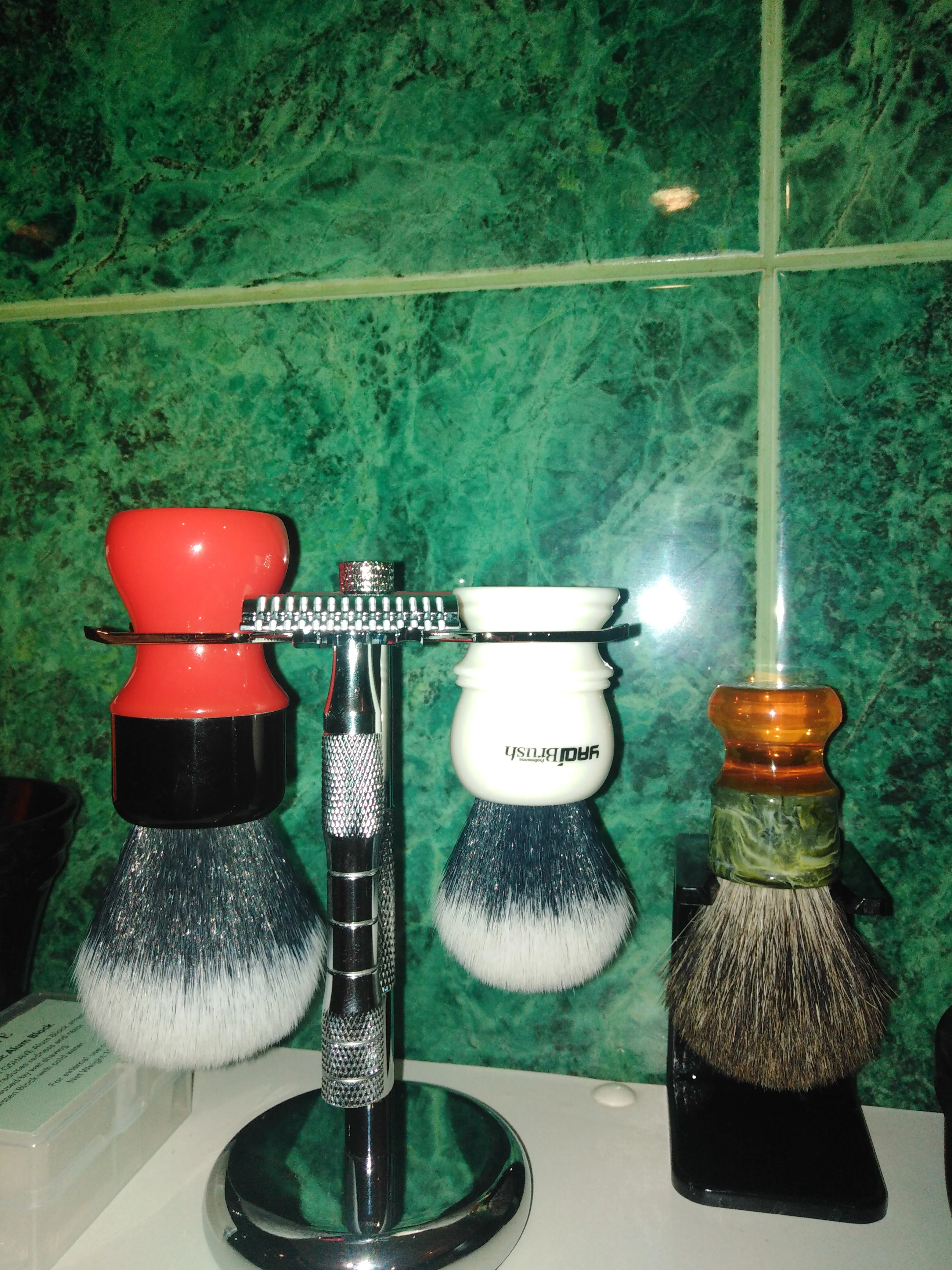 Очень красивая подставка для двух помазков и двух станков. Качественное хромирование. Устойчивая нескользящая платформа. Смотрится стильно. Идеальное соотношение цены и качества. Yaqi, на мой взгляд, один из лучших продавцов аксессуаров для бритья на площадке AliExpress. Рекомендую.