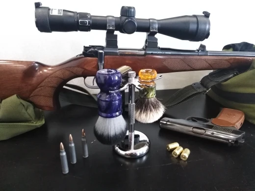 Классная подставка, в нижней части есть паралоновая накладка, чтобы не царапать поверхность. Реально решает проблему сушки помазка и станка.