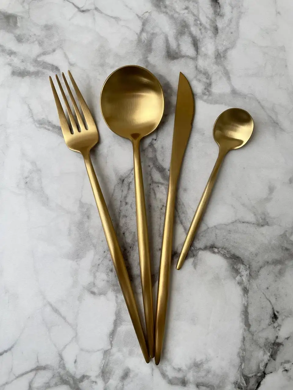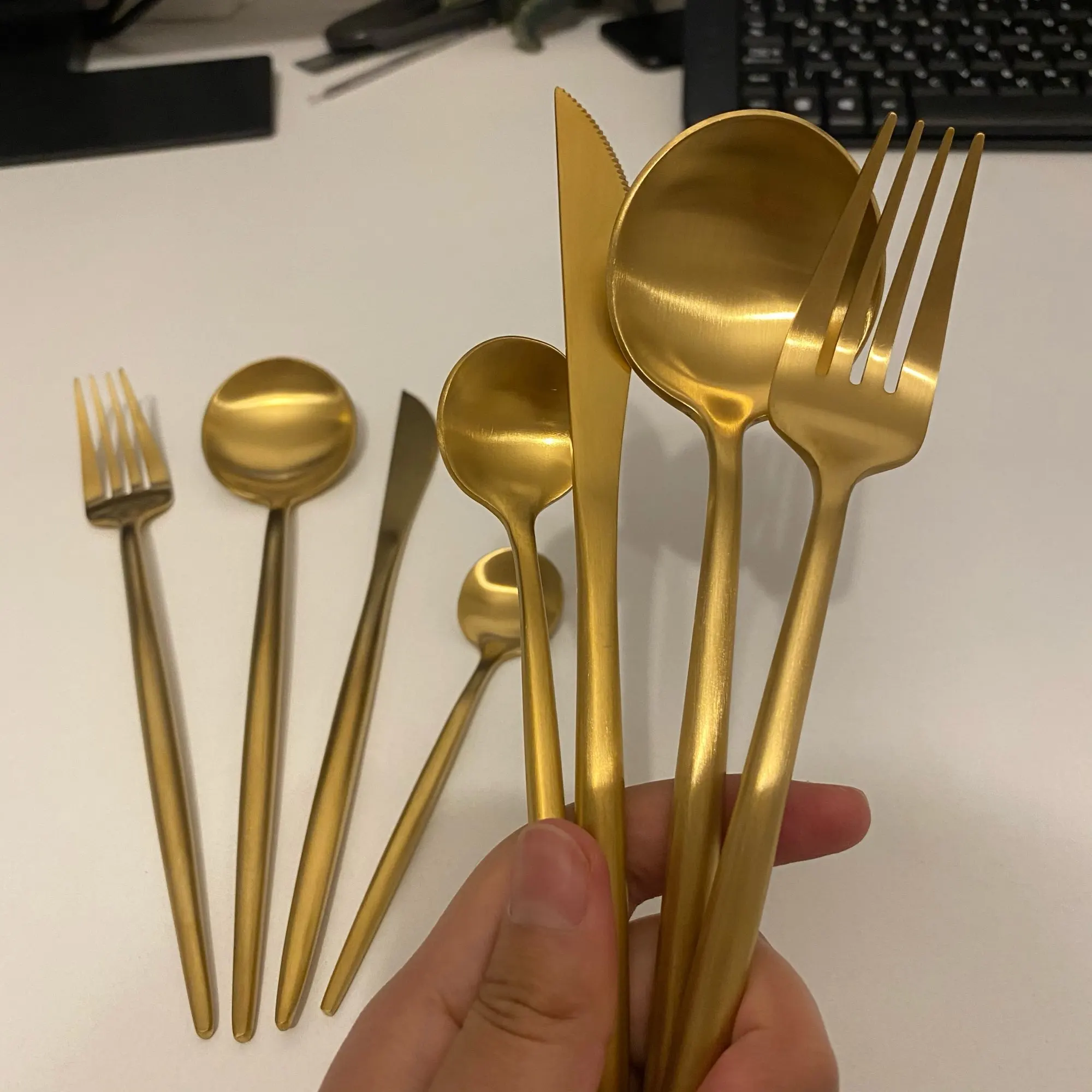 Набор столовых приборов из нержавеющей стали вилки, ножи, ложки, 1810, золото, 1 шт., вилка, ложка, нож, палочки для еды, Прямая поставка