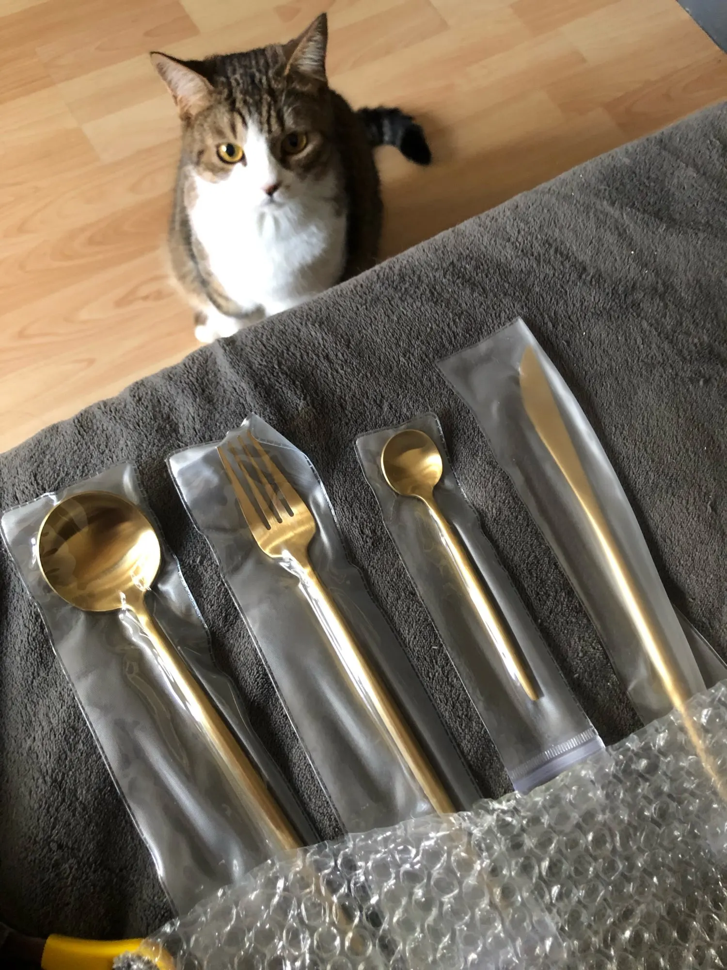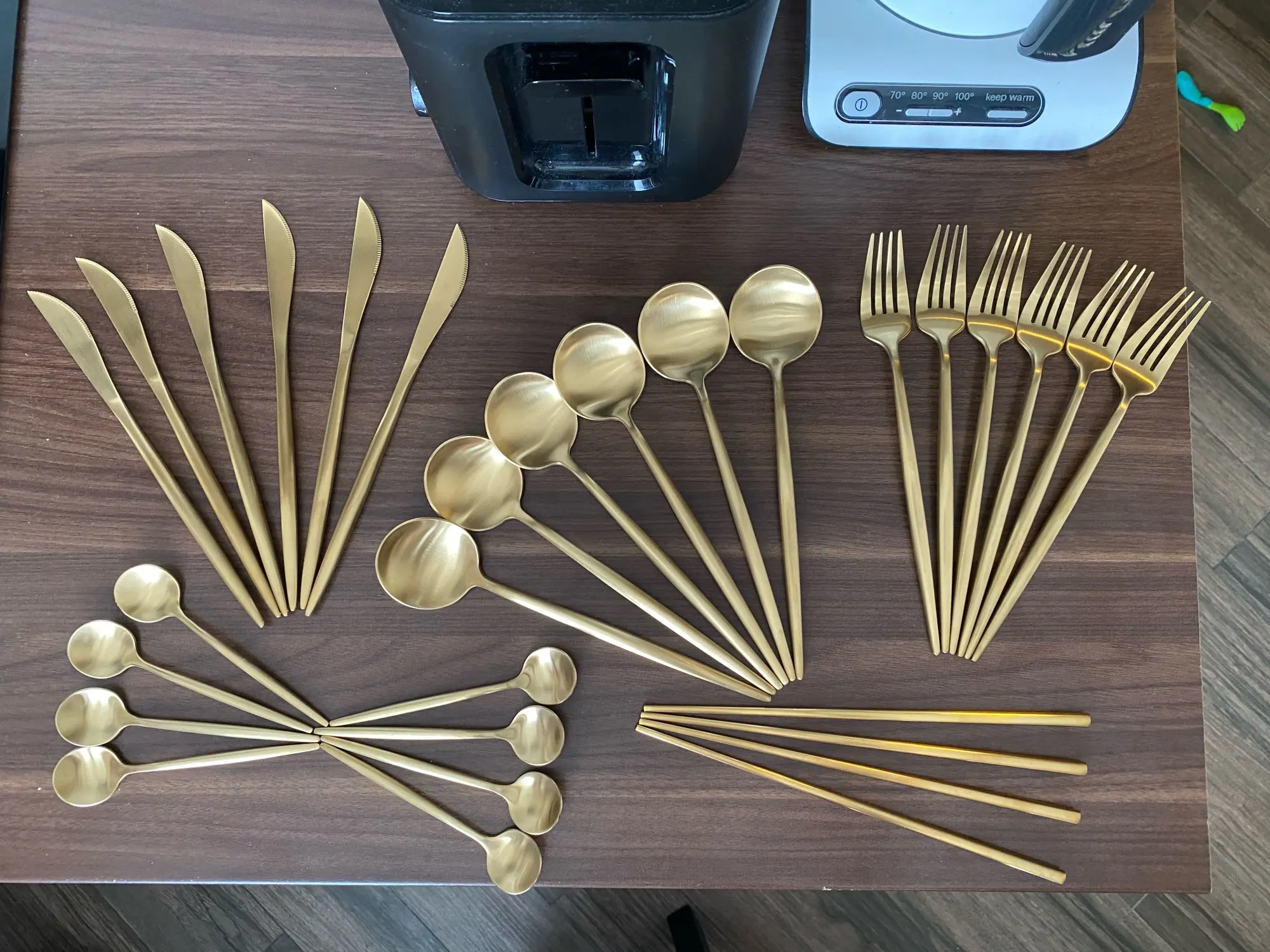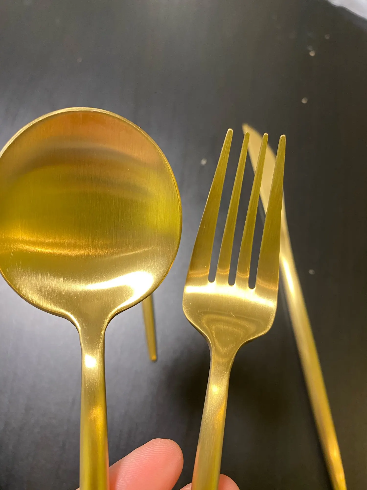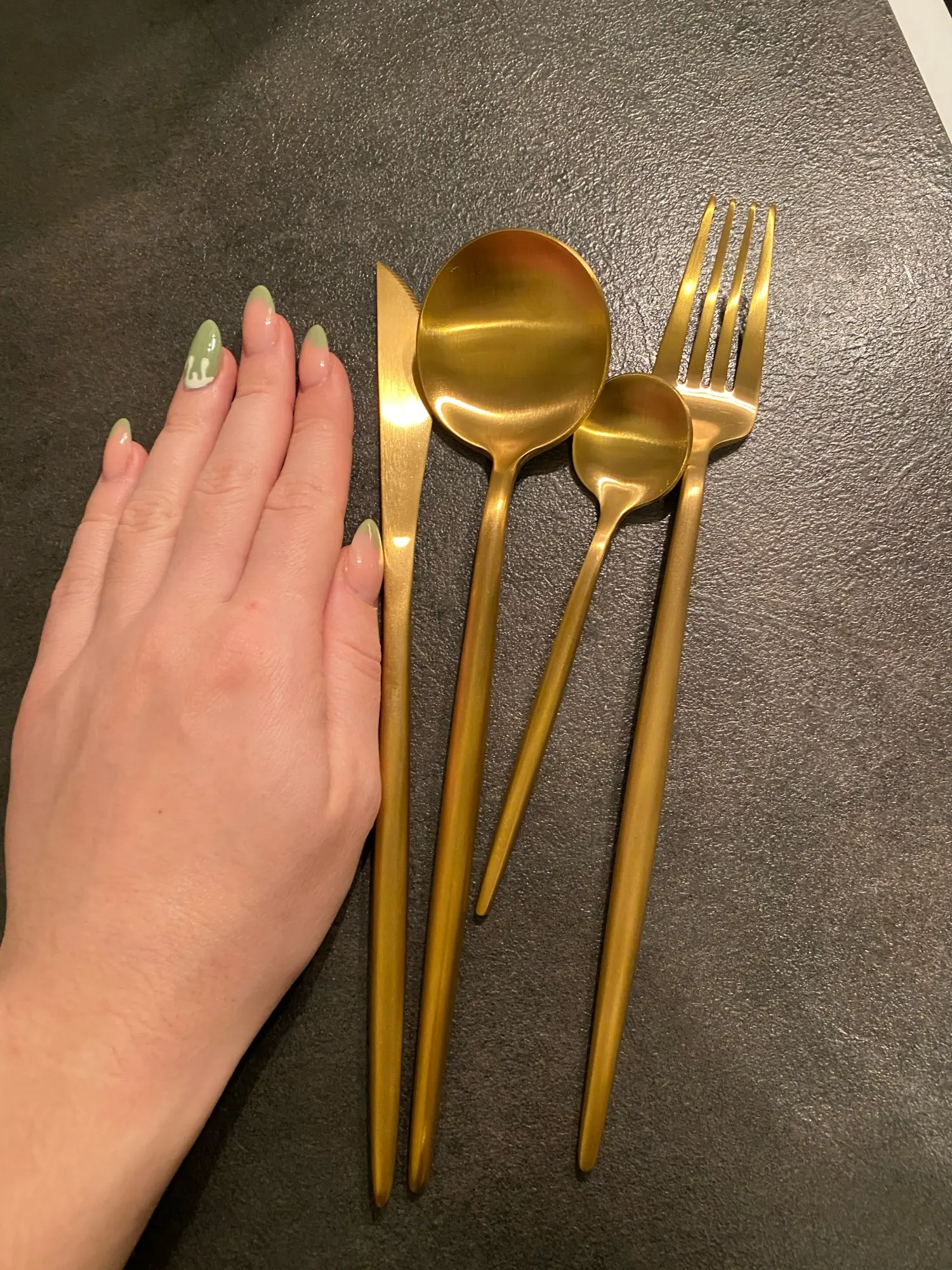 Приборы оличные,ручка толстая,тяжёлые,а не штамповка,для меня это было важно при выборе .10⭐️.Продавцу процветания !