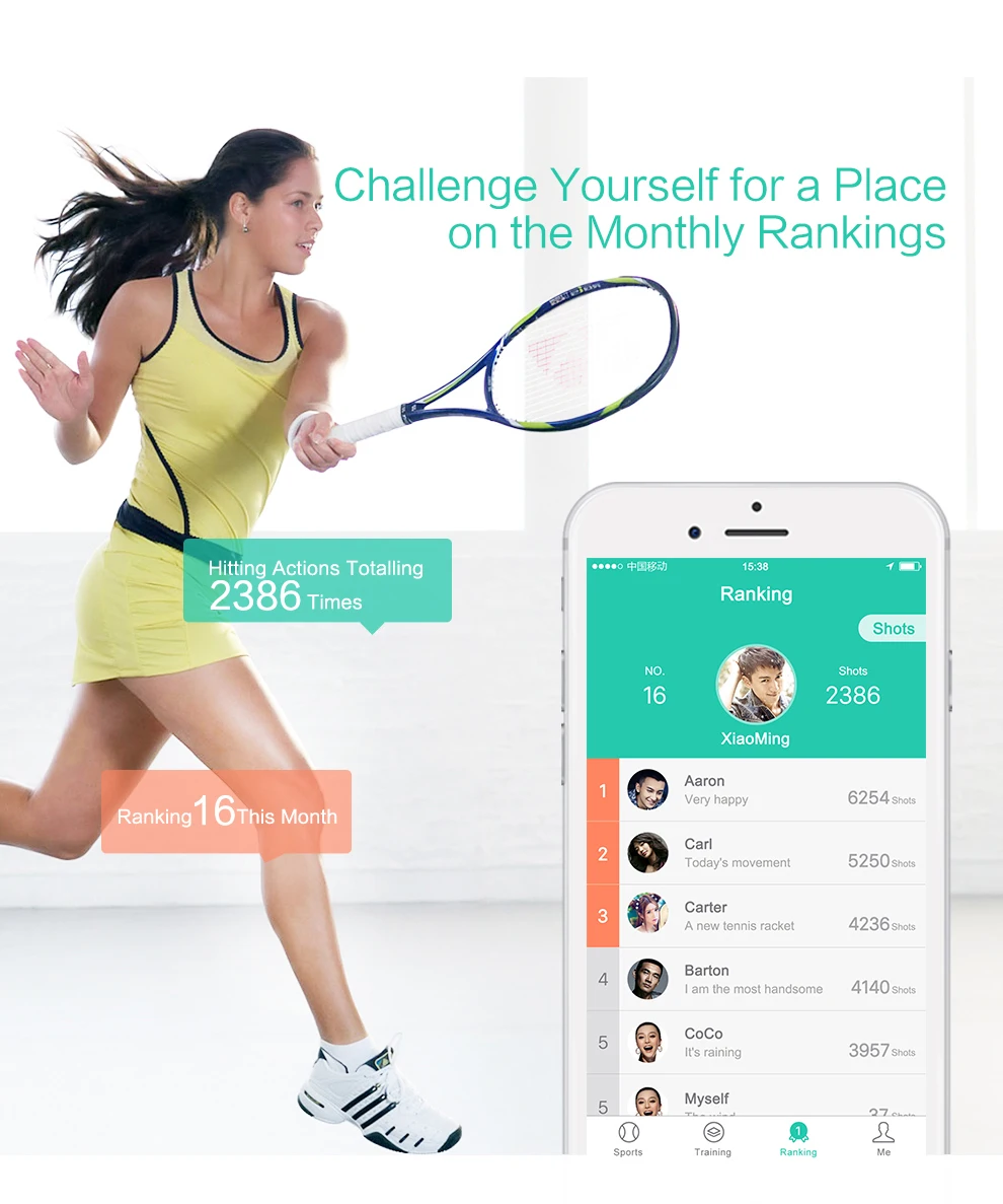 1. Мониторинг данных: точно Отслеживайте скорость, прочность, угол и другие данные, интеллектуальное определение типов действий, с помощью анализа данных, быстро осваивайте необходимые операционные инструменты.
