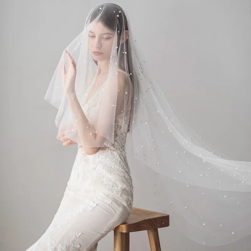 Фата свадебная цвета слоновой кости с гребнем и жемчугом