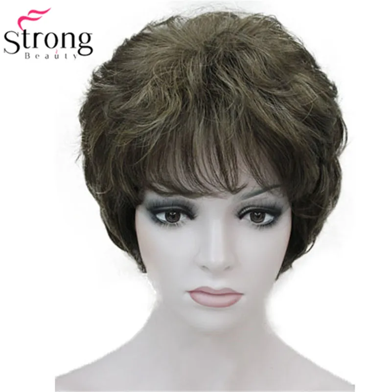 StrongBeauty короткий многослойный темно-AuburnThick полный синтетический парик женские парикиНовые женские короткие прямые волнистые волосы парик синтетические поддельные волосы парик