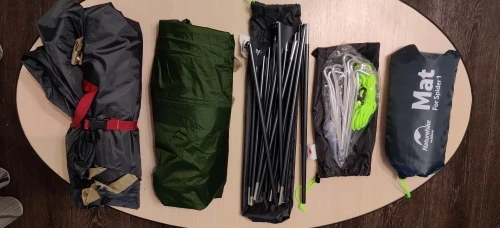 Палатка огонь! Очень легкая, компактная. В комплекте идут: футпринт, пол с сеткой, тент, дуги, колышки+ растяжка, резинка с карабином для удобства сворачивания, сумка для хранения. По сравнению с моей палаткой для кемпинга, кажется игрушечной, но тент и пол выглядят добротными. Пока покупкой довольна, с наступлением весны опробую в походе! Отдельный плюс за доставку - палатку привёз курьер на 4 день после заказа. Спасибо!