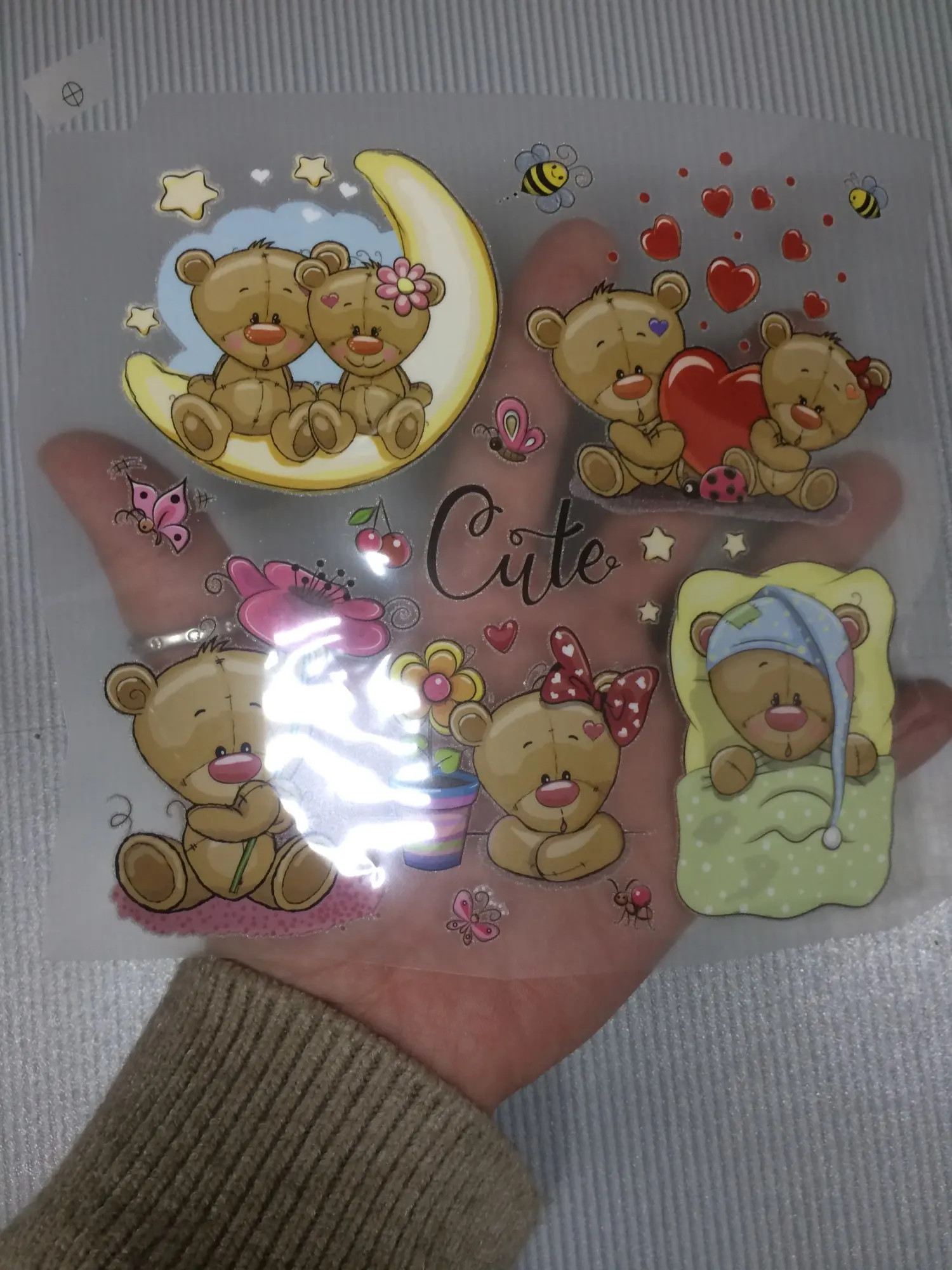 очень хорошие наклейки,яркие,без повреждений. клей нанесён равномерно,без пробелов-значит хорошо приклеются. не малюсенькие, на детскую одежду самое то! я довольна)