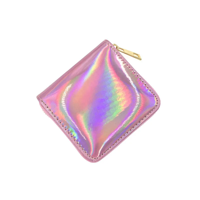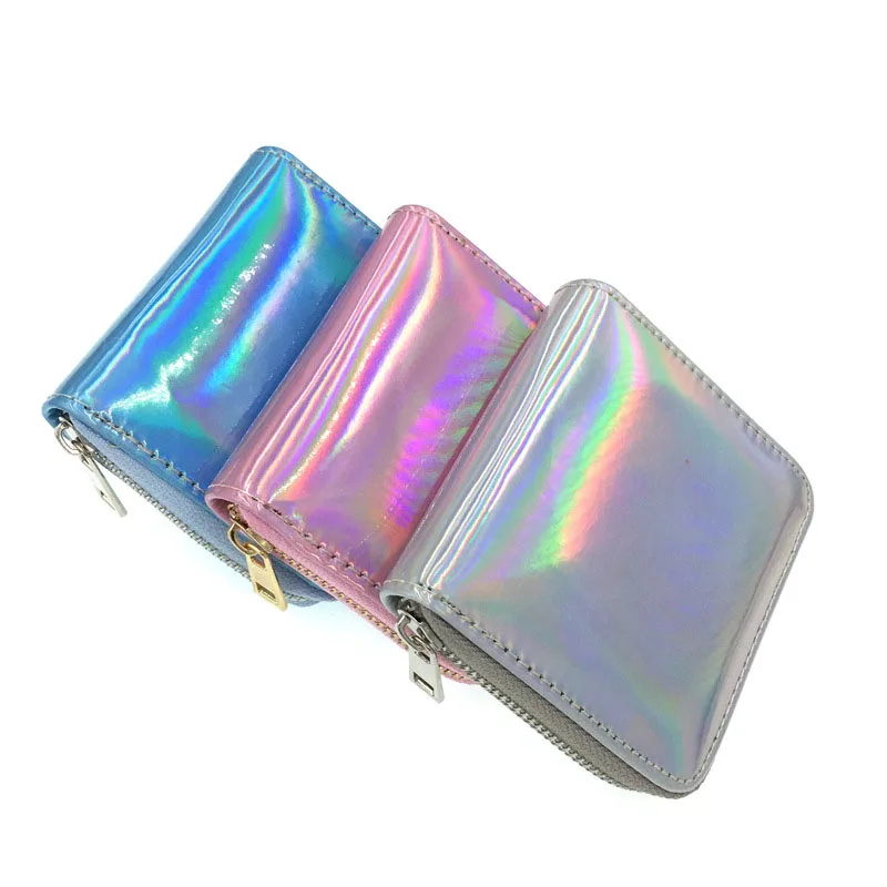 Модный Новый голографический маленький кошелек KANDRA, кошелек для монет, блестящий женский короткий кошелек из искусственной кожи, держатель для карт, сетчатая швейная нить