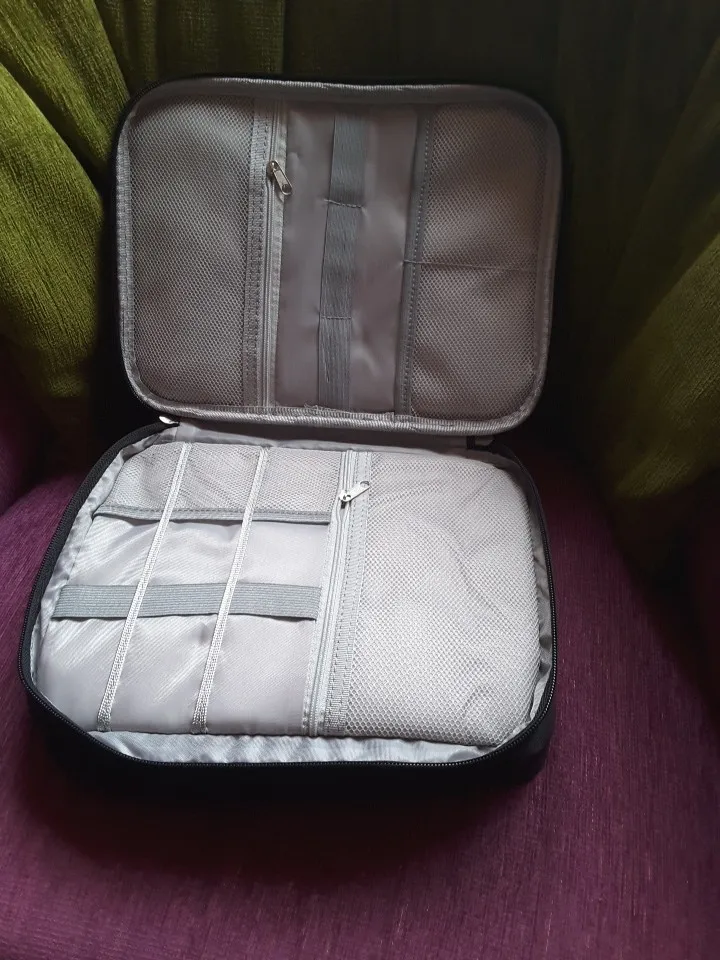Быстрая отправка и получение. Хотя не боясь ударов, сумка была очень хорошо упакована. Достаточно места, чтобы поцарапать удивительную четверть кабелей и зарядных устройств в минимальной упаковке. Я легко вписываюсь в кабели и зарядные устройства 7 устройств (планшет, смартфон, мышь и беспроводная клавиатура, APN и т. д.). Рекомендуемый продавец и товар. Купить с закрытыми глазами!