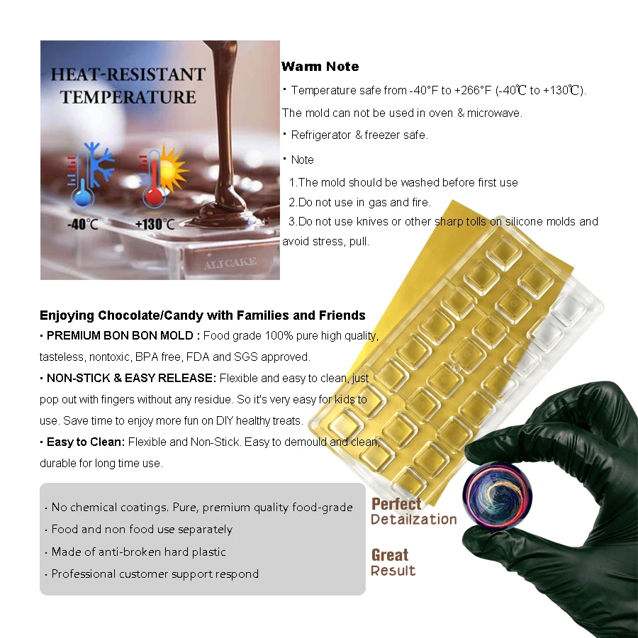 1. Используйте пищевые пластмассы, соответствующие FDA и SGS.2. Наши формы тяжелее, толще, прочнее и имеют более длительный срок службы!3. Отсутствие вредных веществ, обеспечение безопасности и здоровья!4. Мы осуществляем Бесплатные возвраты для многих стран!5. Наша поверхность формы гладкая и не подвержена царапинам.