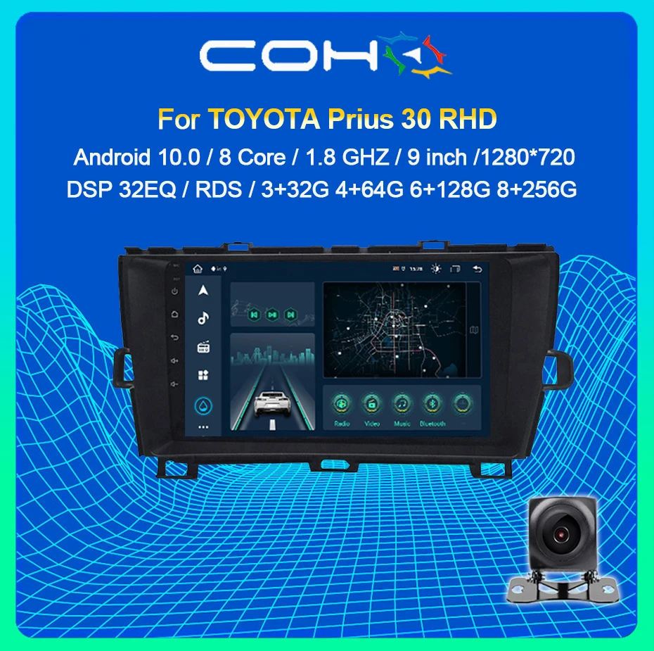 Автомобильный проигрыватель для Toyota Prius 30, 8 ГБ + 256 ГБ, радио, автомобильный проигрыватель, стереоприемник, Android 10,0, 8-ядерный, QLED экран 1280*720