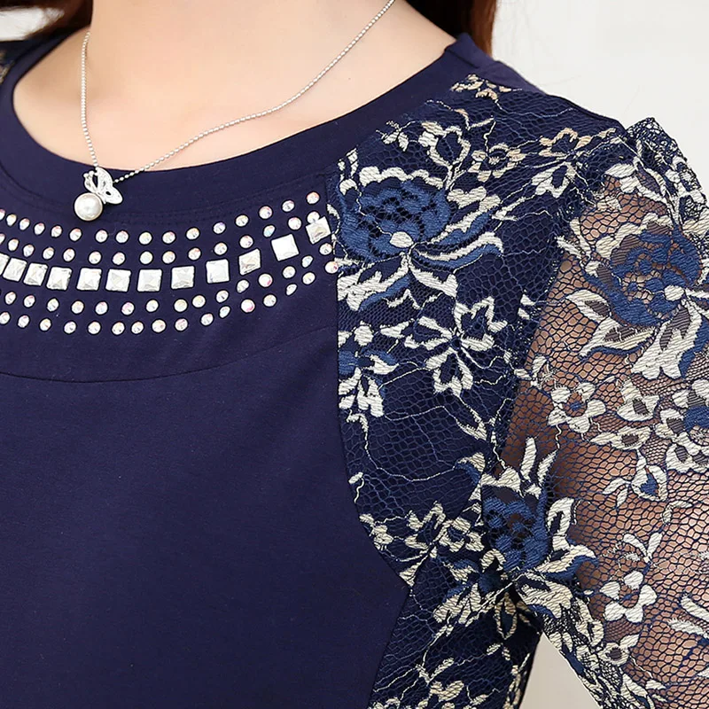 Женская кружевная блузка в стиле пэчворк, с длинным рукавом, батальных размеров, 2018 г 40