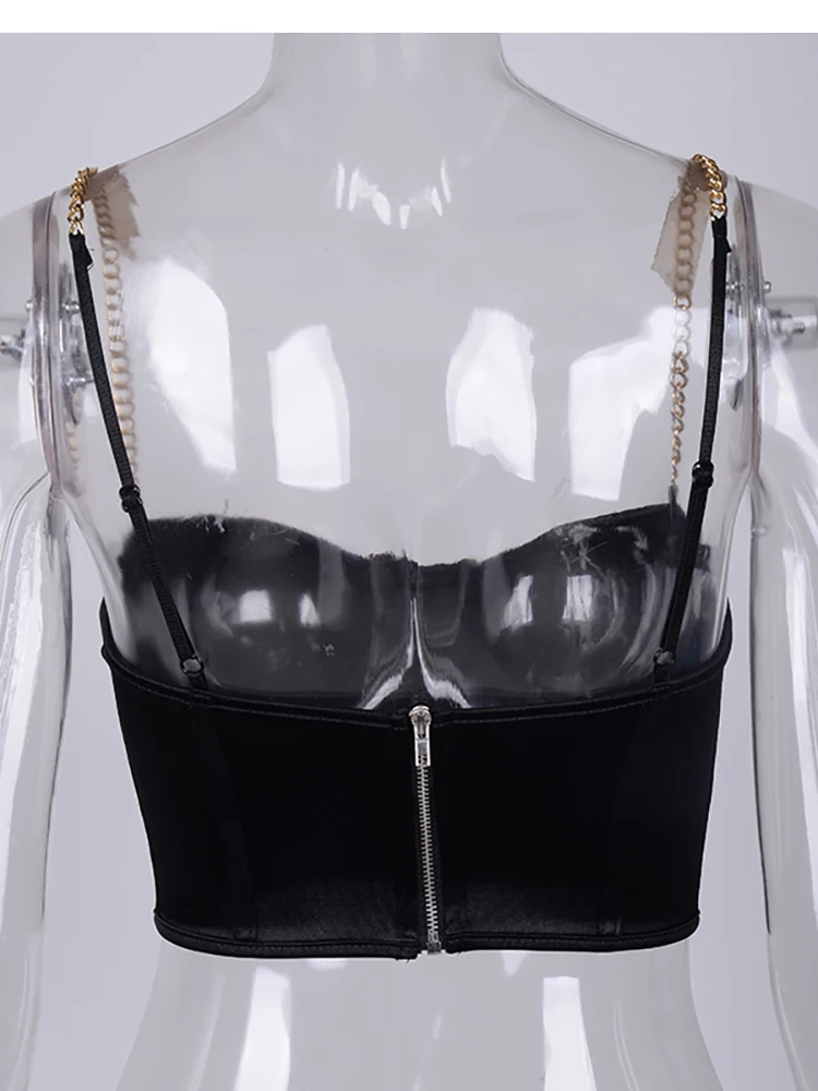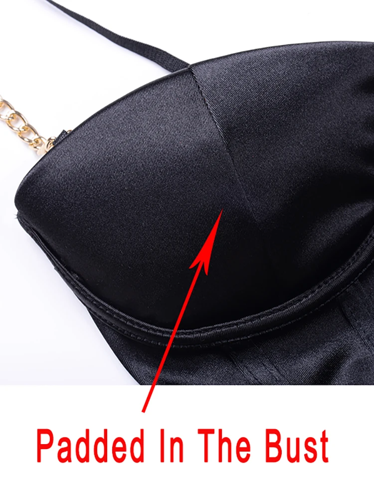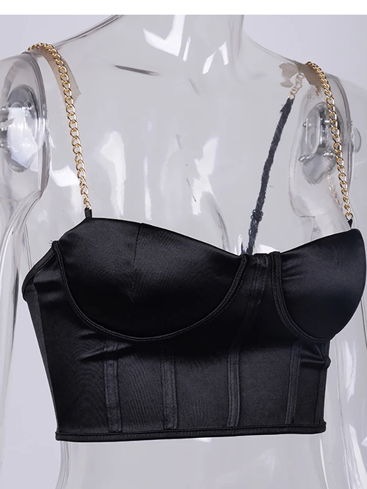 Женский укороченный топ-бюстье NewAsia, черный укороченный Атласный топ с цепочкой на подкладе на лето