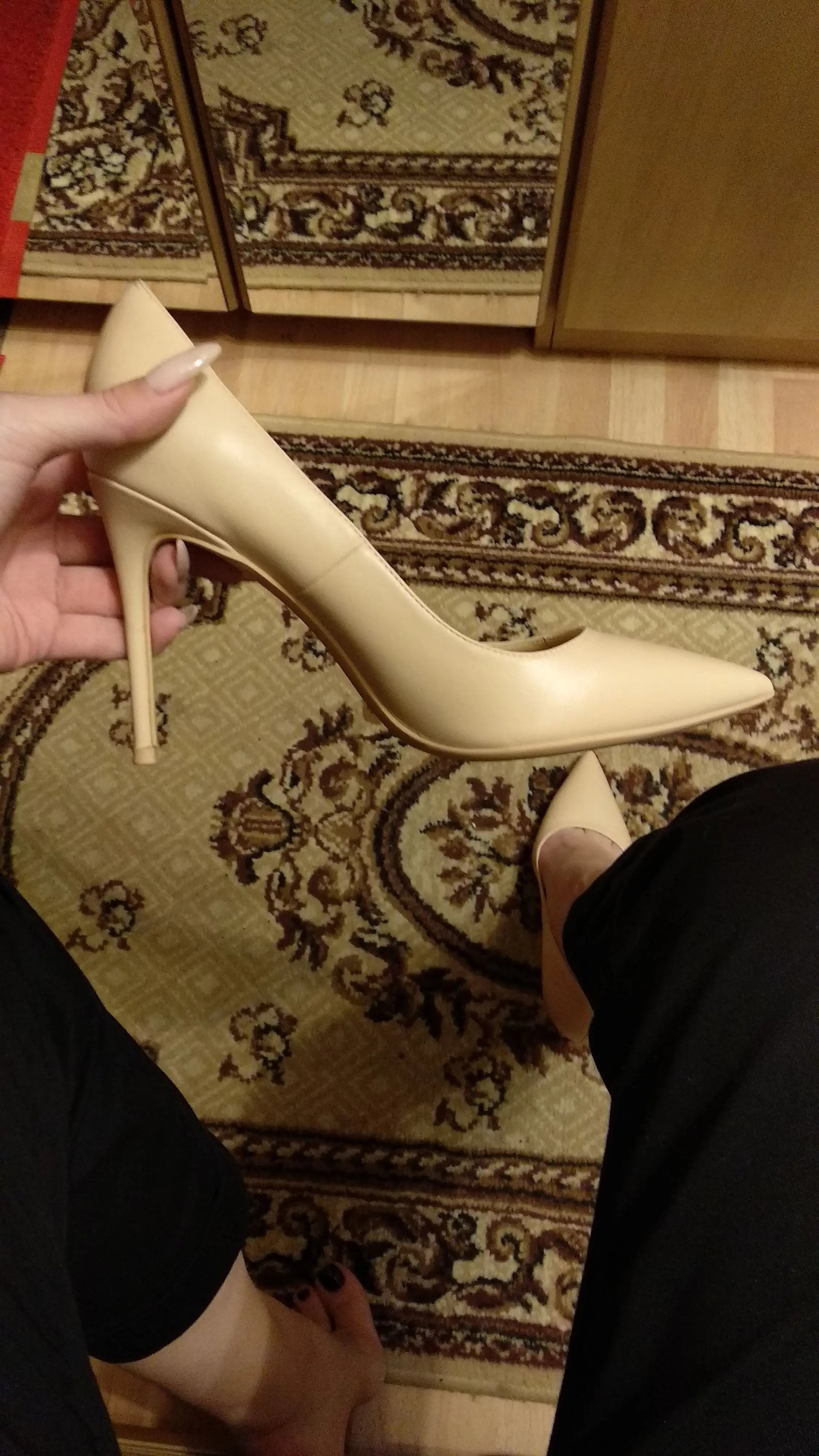 Туфли на ноге смотрятся аккуратно, благородный бежевый цвет. Сначала заказала туфли в размере 7,5,но на узкую ногу с длиной стопы 23.7 оказались велики, сделала возврат, деньги вернули, перезаказала сразу 2 пары в чёрном и бежевом цвете- сели хорошо, с капроновыми колготками будет самое то.