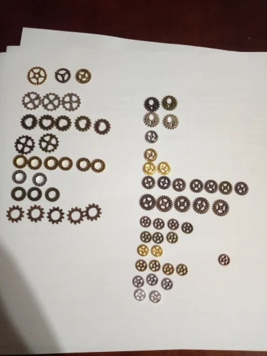 Всё как в описании. Размеры, цвет, качество. 64 штуки. Отличные. Для поделок в стиле стимпанк самое то.
