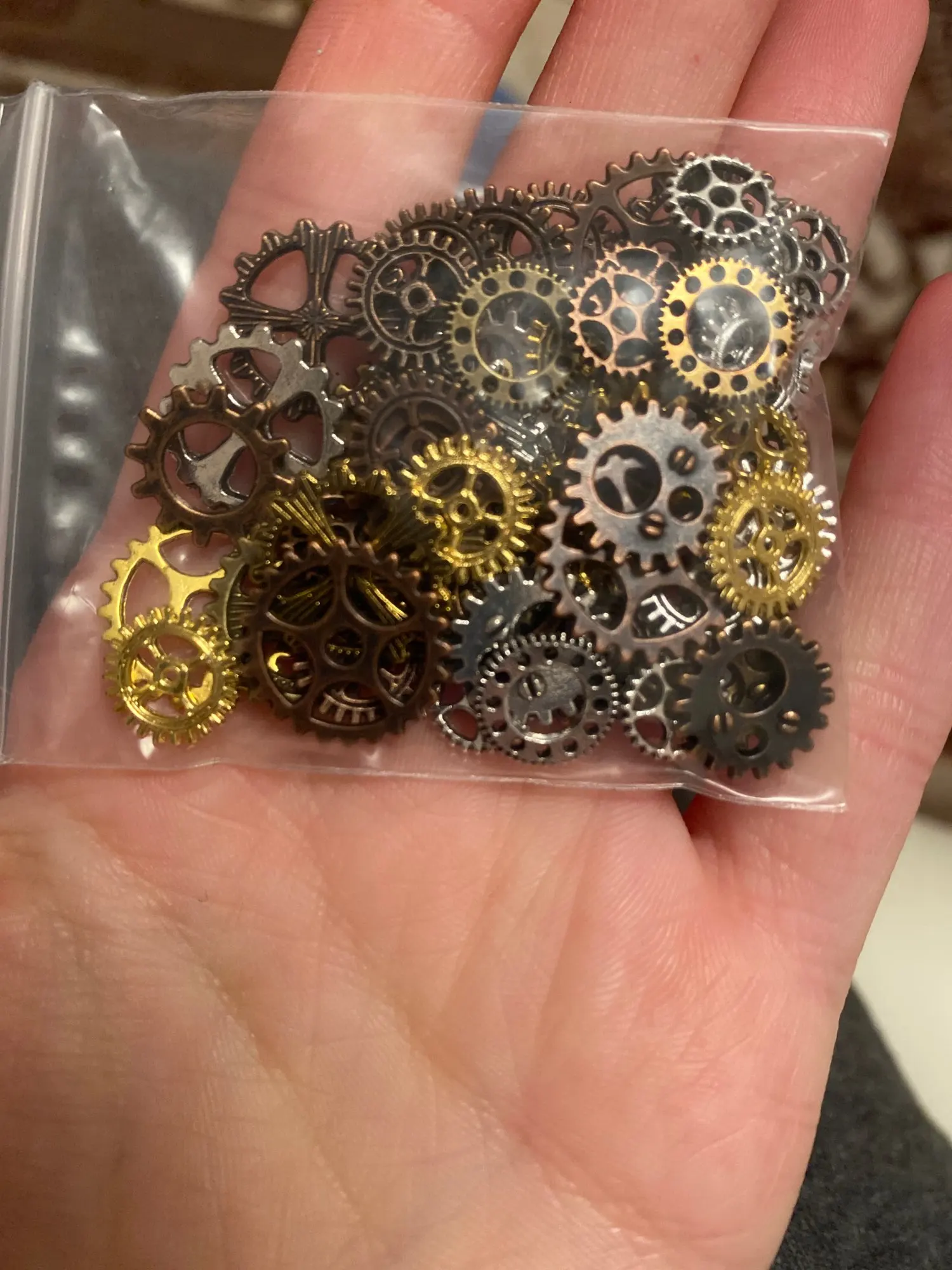Доставка занимает почти 3 месяца, поэтому довольно некоторое время, но его стоит ждать. Шестерни выглядят отлично, я получил в общей сложности 62 шт., мне особенно нравятся бронзовые и медные. Они будут идеальны для некоторых стимпанк проектов, я определенно закажу больше таких предметов.