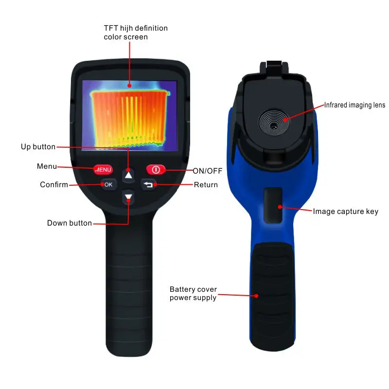 ● Регулируемая излучательная способность и компенсация отраженного фона повышает точность измерения на полуотражающей поверхности● Маркеры температуры горячих и холодных точек, которые направляют пользователя в самые горячие и холодные регионы в инфракрасной тепловой карте● Визуальная и тепловая карта изображения выравнивания края обнаружения линии● Регулируемая излучательная способность от 0,1 до 1,0● Выравнивание изображения с помощью визуальной/тепловой карты● Захват и сохранение изображения на sd-карте● USB edge PC чтение фотографий выбор цветовых палитр и источник питания