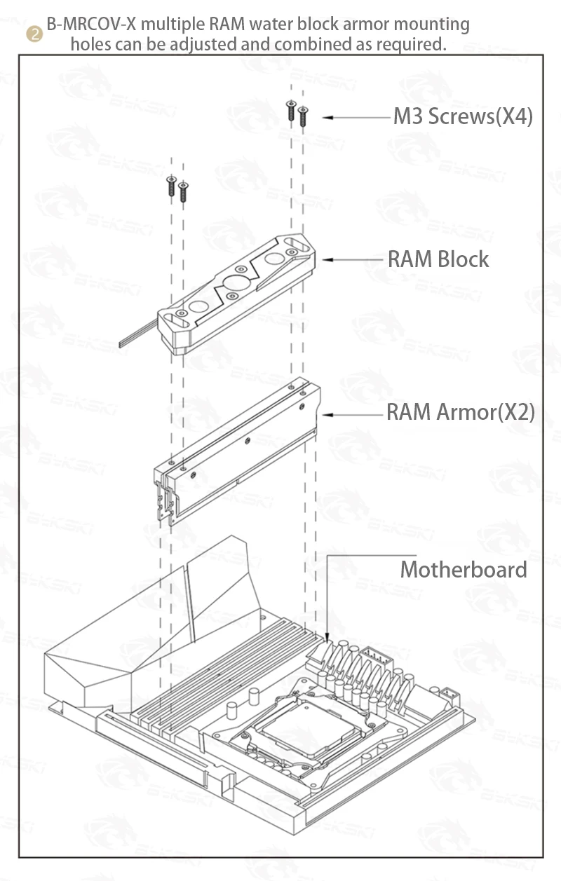 Блок водяного охлаждения Bykski RAM для двухканального 2 шт. радиат...