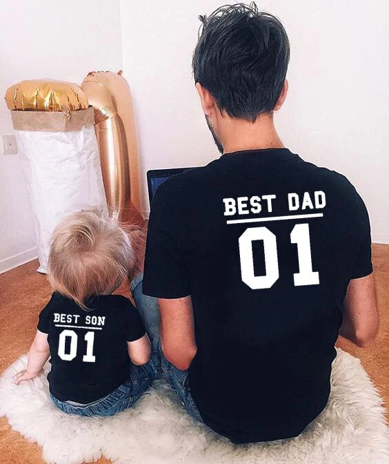 Лучший папа 01 и лучший сын 01, одинаковые футболки для сына и отца, футболки для папы и сына, семейная рубашка, повседневный семейный образ с буквенным принтом
