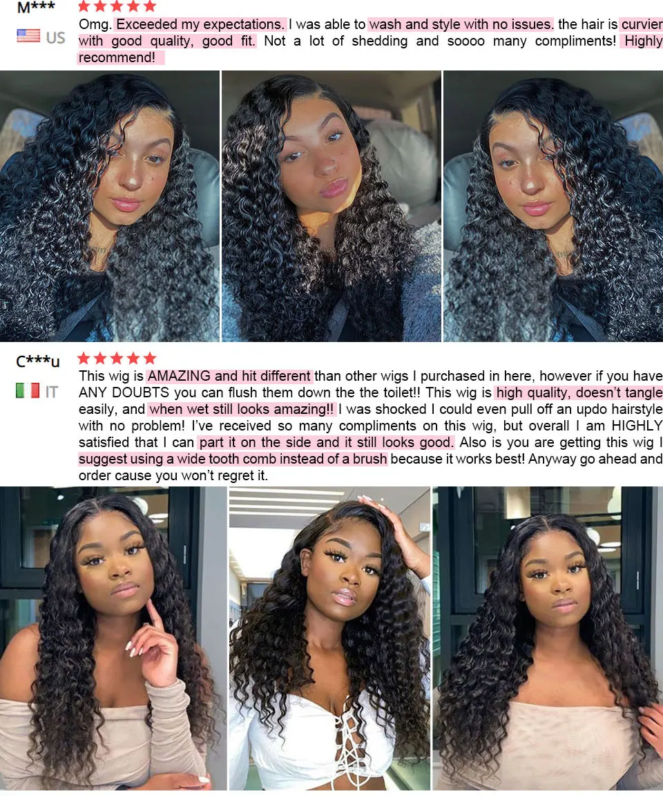 Потрясающие волосы. Очень быстрая доставка. Товар пришел в течение 5 дней. Мягкая и легко стильная. Выглядит хорошо как влажным, так и сухим. Так как это мой первый парик с глубокой волной, я должен сказать, что я очень доволен и буду очень рекомендовать это для любого новичка. Кружево хорошо сочетается, а волосы плотно прилегают и удобны. Это также мой первый парик без повязки. Я был рад, что я смогу уютно сидеть на парике без хлопот и клея, могу ли я добавить. Я получил дополнение о волосах, и нет сильного запаха. Если поставляется с двумя париками и ресницами.
