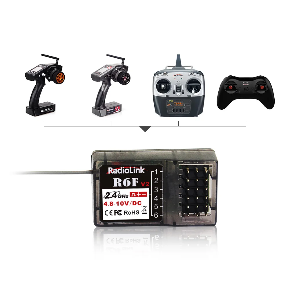 -6 каналов: 6-канальный приемник подходит для передатчика Radiolink RC4GS/RC4GS V2/RC6GS.RC6GS V2/RC4G/T8FB/T8S