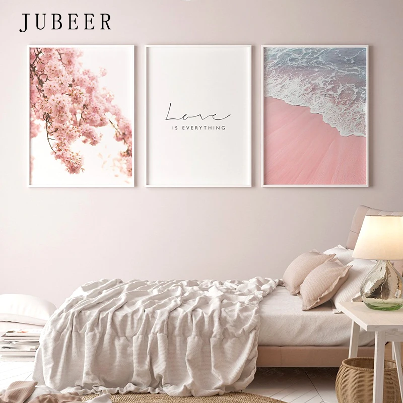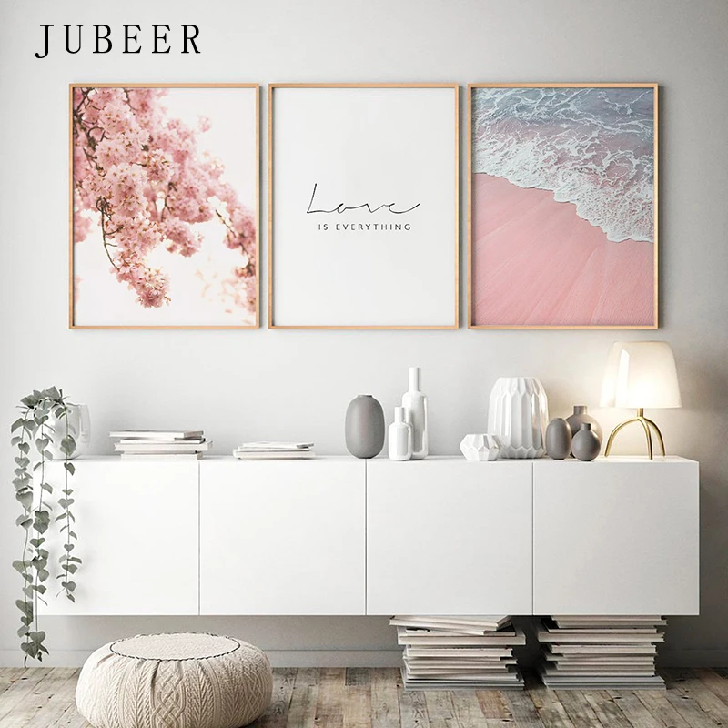 Плакат в скандинавском стиле, морской пляж, декоративная картина, розовый цветок, настенное искусство для гостиной, Скандинавское украшение, домашний декор