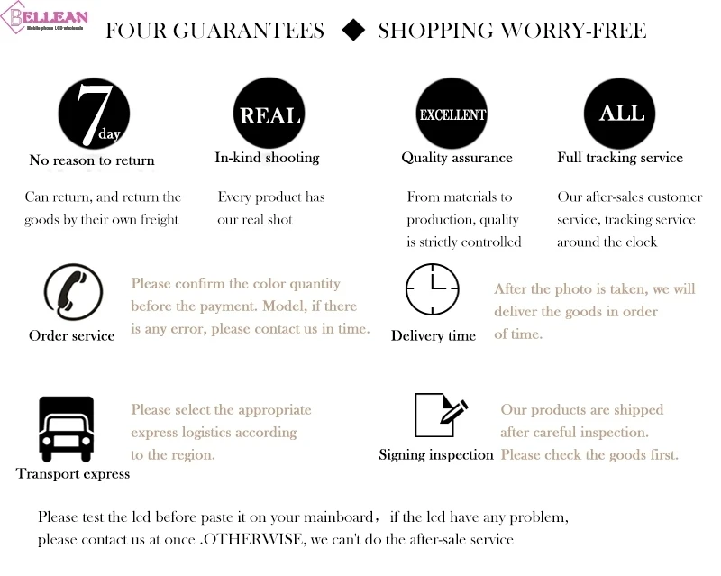 пожалуйста, проверьте ЖК-дисплей, прежде чем вставлять его на материнскую плату, если с ЖК-дисплеем возникнут какие-либо проблемы, пожалуйста, немедленно свяжитесь с нами, В противном случае мы не сможем выполнить послепродажное обслуживание.