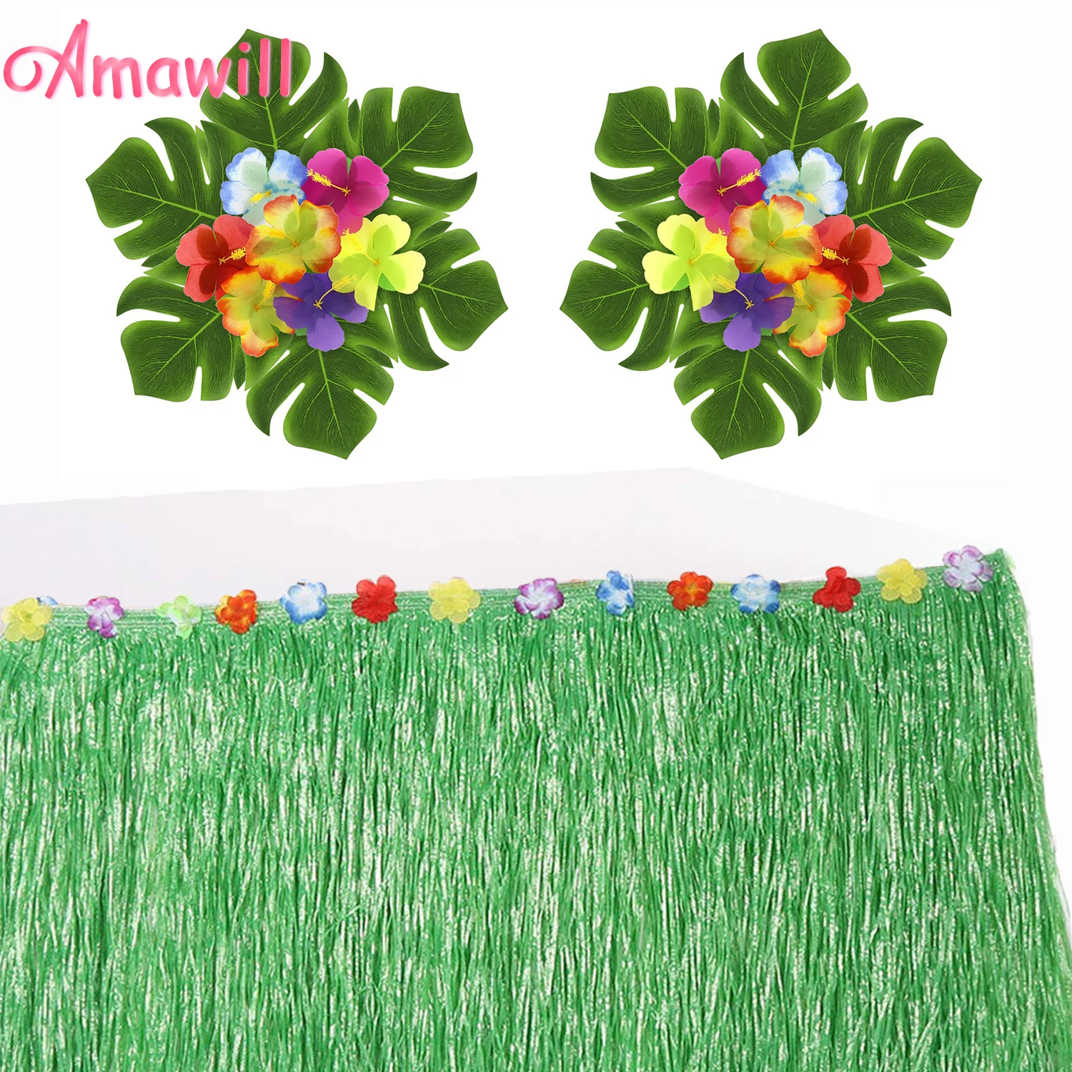 Amawill тропическая Гавайская настольная юбка, сделай сам, цветы, трава, Пляжное украшение, стол, цветок, свадьба, лето, товары для вечеринок 7D