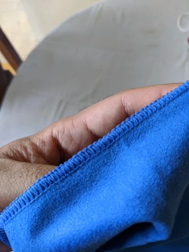 Микрофибра, край прострочен, чтоб не распускалось. Приятное. Рекомендую