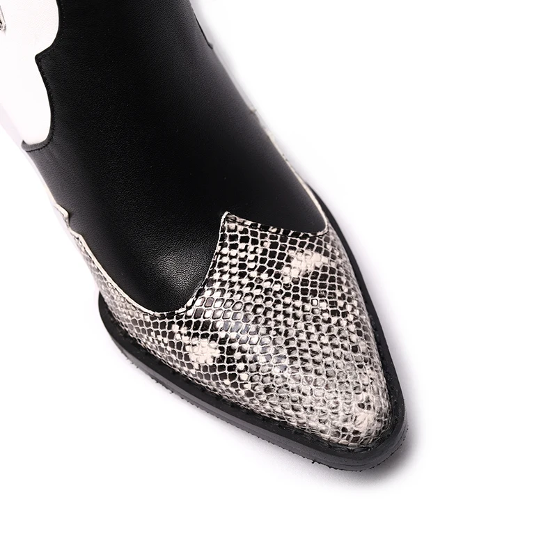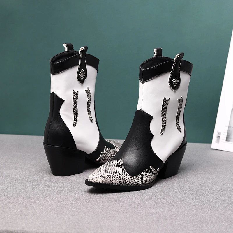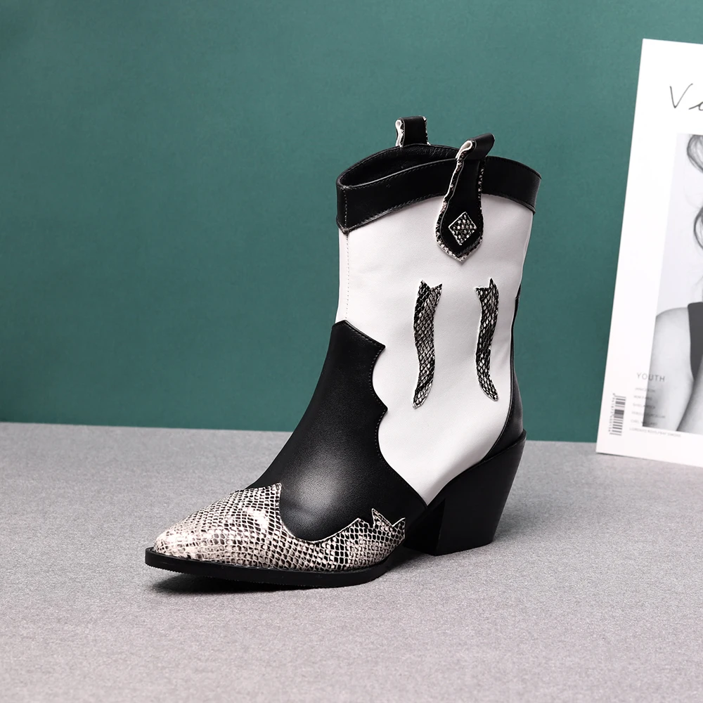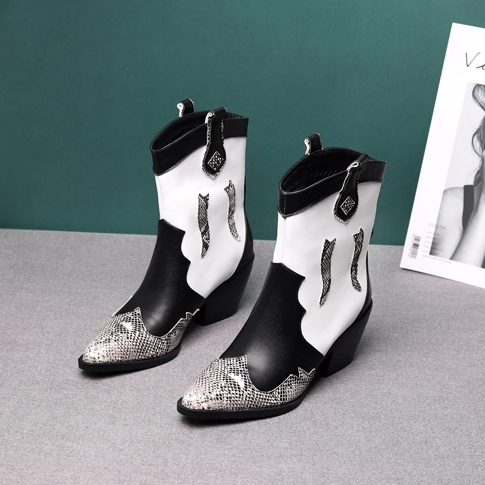 Ковбойские Полусапоги из змеиной кожи на танкетке; женские короткие ботинки на высоком каблуке смешанных цветов; ковбойские ботинки; Западная пастушка; женские ботинки