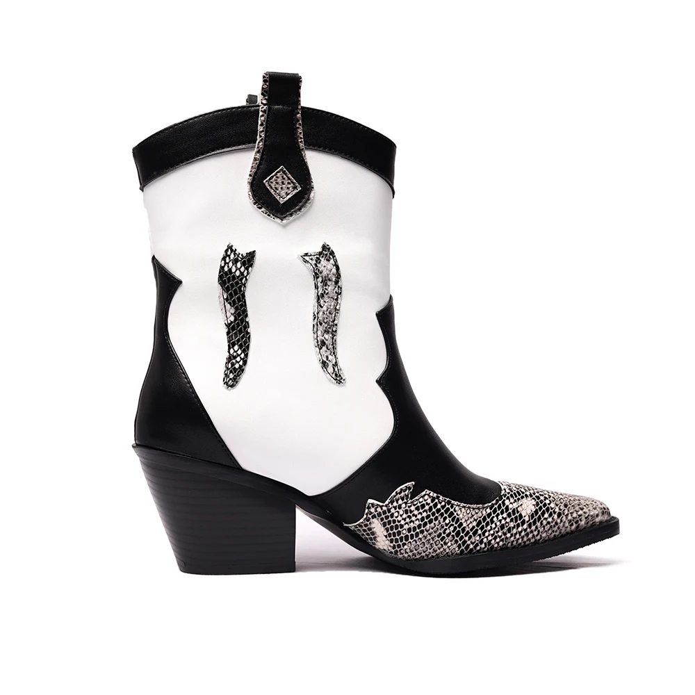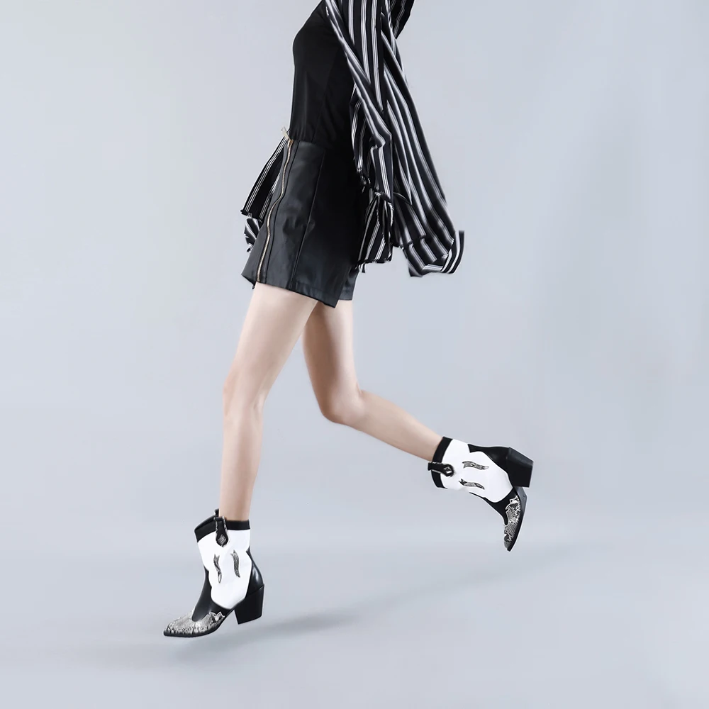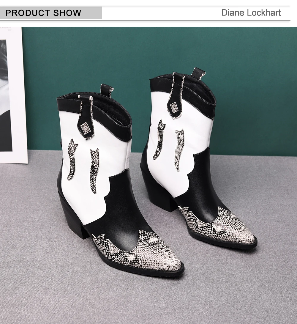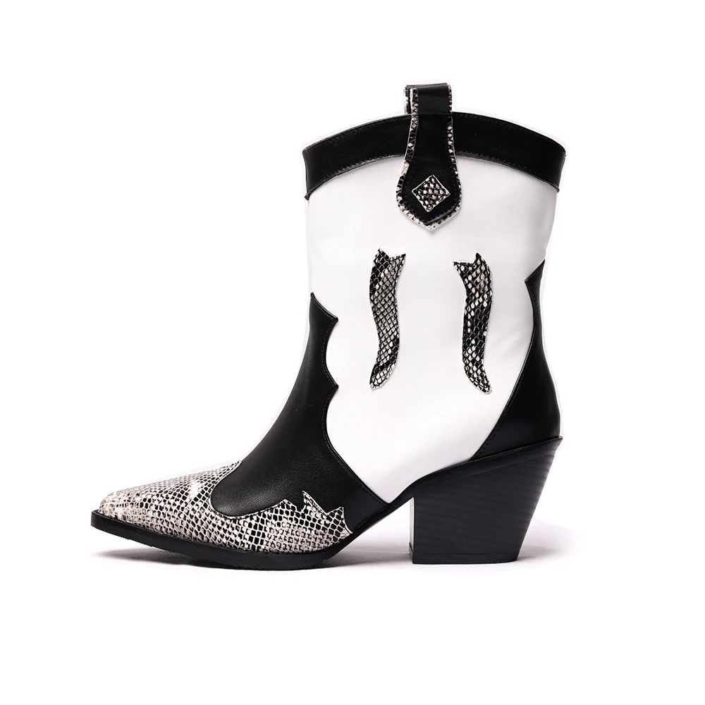 Ковбойские Полусапоги из змеиной кожи на танкетке; женские короткие ботинки на высоком каблуке смешанных цветов; ковбойские ботинки; Западная пастушка; женские ботинки