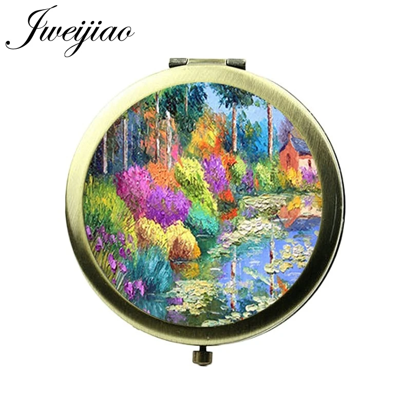 Коллекция Love от JWEIJIAO, известные Масляные картины, зеркало для макияжа, стеклянный кабошон, круглые компактные женские карманные зеркала для туалетного столика
