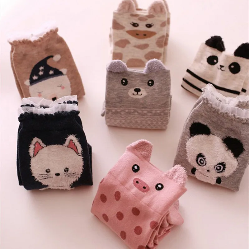 Милые женские носки осень-зима 2018, милые женские носки с объемными ушками, с рисунком панды, свинки, жирафа, хлопковые носки для женщин
