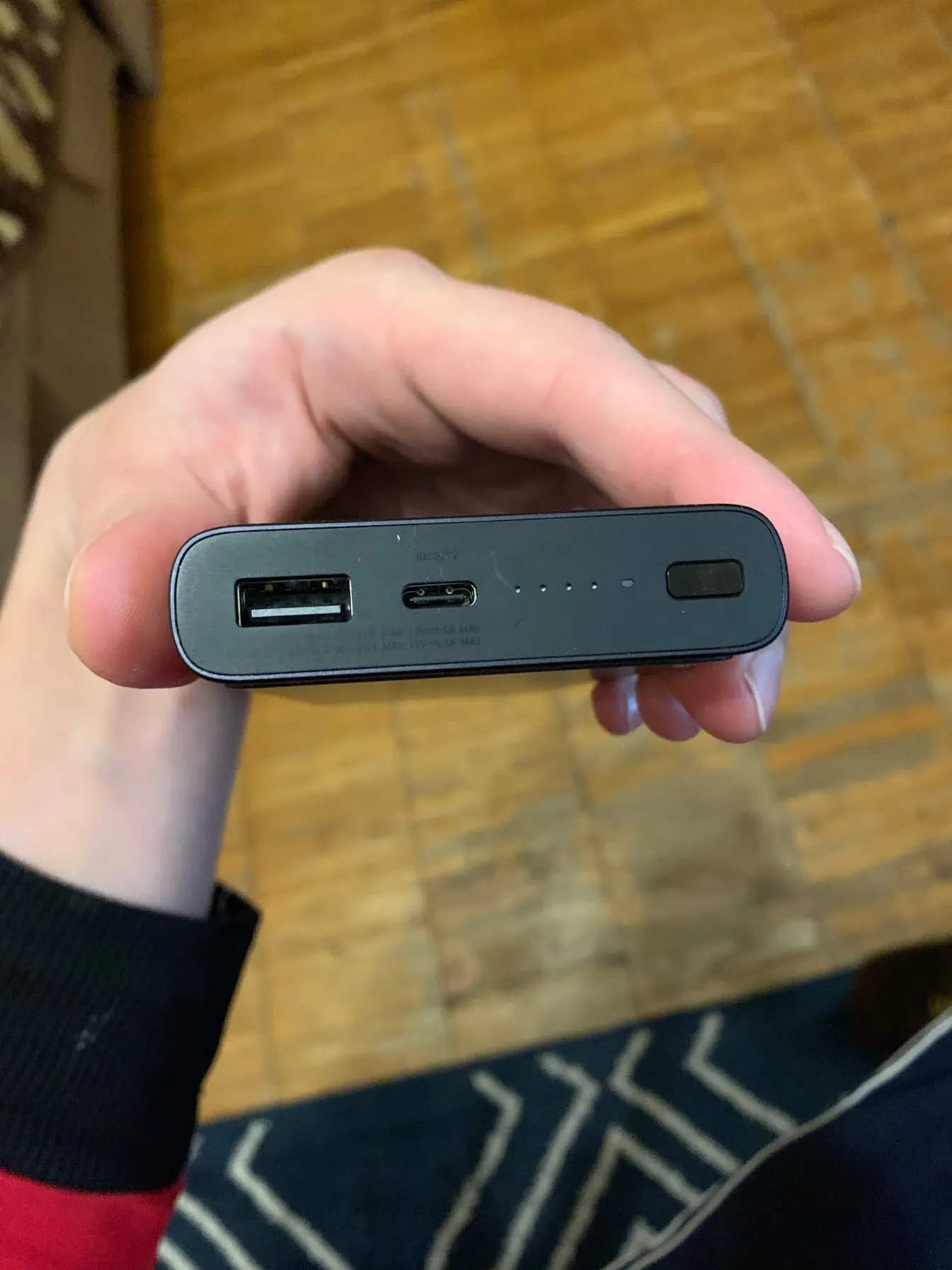 Наконец-то пришёл аккумулятор на 10000 mAh с функцией беспроводной зарядки. Это именно модель PLM11ZM что значит, что корпус и вправду металлический, а зона зарядки прорезиненная. К покупке рекомендую, хотел именно такой, а не модель M12...... что-то там. Аккумулятор шёл долго. Заказывал 11.11.2020, а пришёл 12.01.2021. Но товар и продавца рекомендую. В комплектации аккумулятор на 10 тысяч миллиампер часов, короткий шнур USB - USB C, инструкция полностью на китайском, есть печати как на коробке, так и на инструкции.