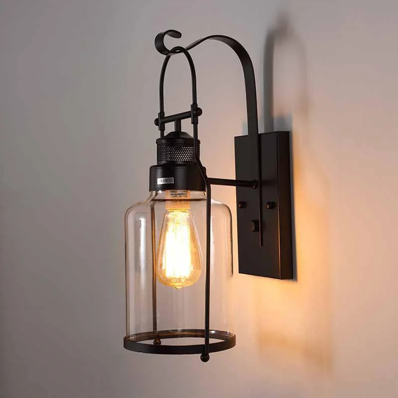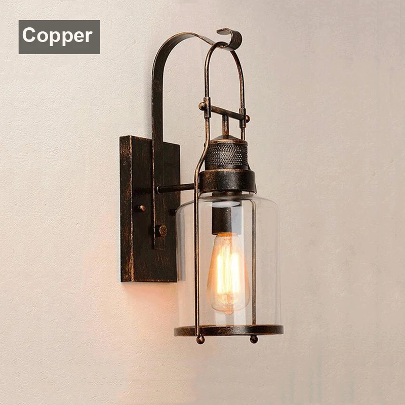 Железный садовый настенный светильник в стиле ретро в стиле лофт, уличное освещение для спальни, коридора, ресторана, кафе, балкона, стеклянное бра с бюстгальтером