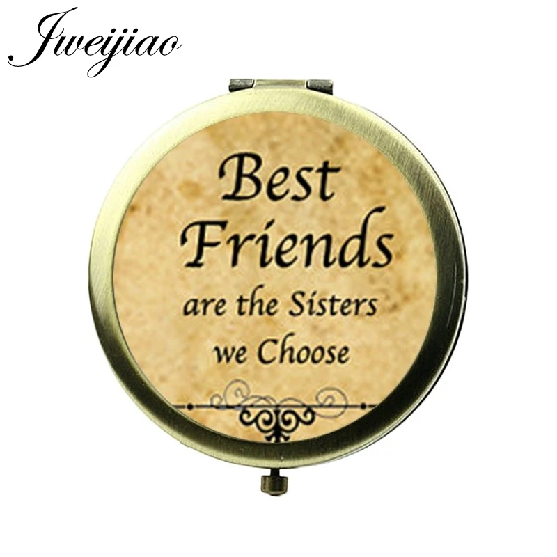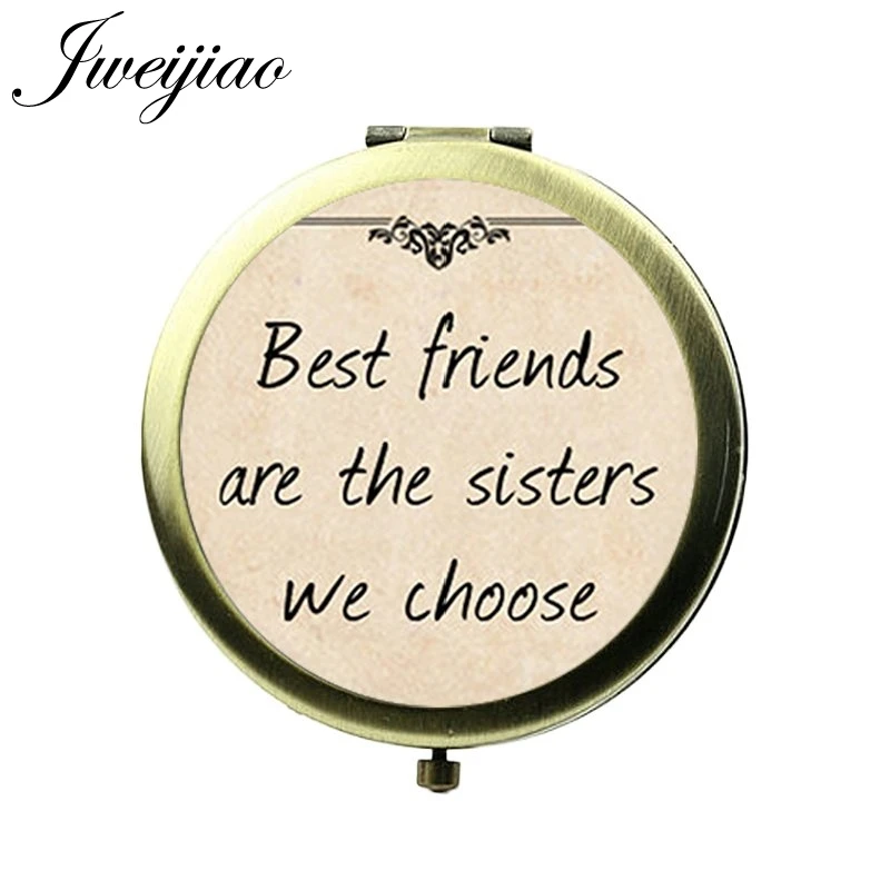 Винтажное карманное зеркало JWEIJIAO для лучших друзей, сестер, цитаты, стекло для девочек, кабошон, бронзовые металлические круглые плавающие зеркала для макияжа