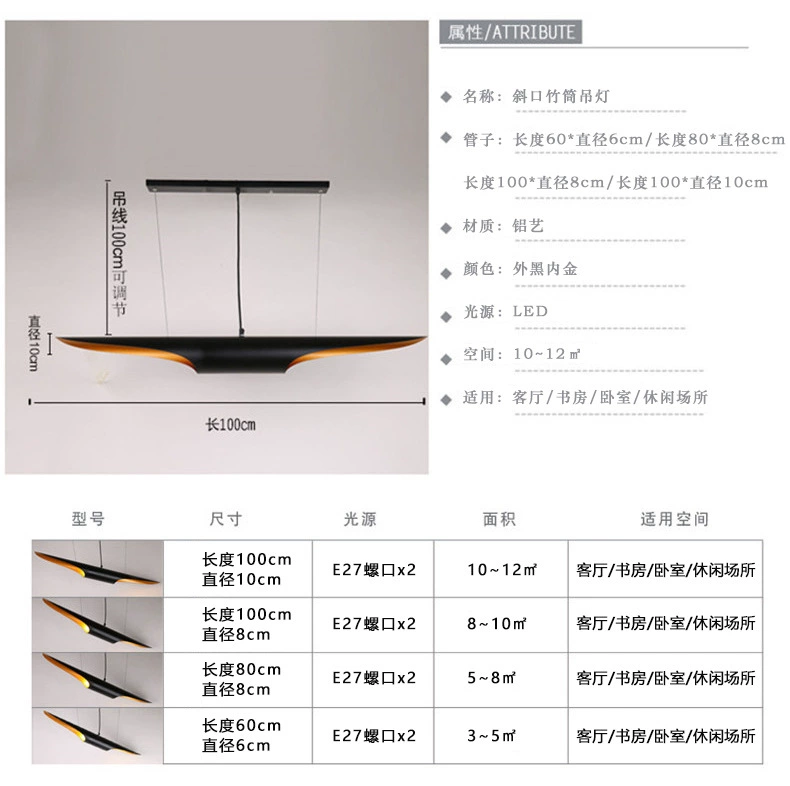 Скандинавская простая стильная ресторанная бамбуковая лампа педант индивидуальная креативная кофейная бара алюминиевая трубсветильник фотолампа E27