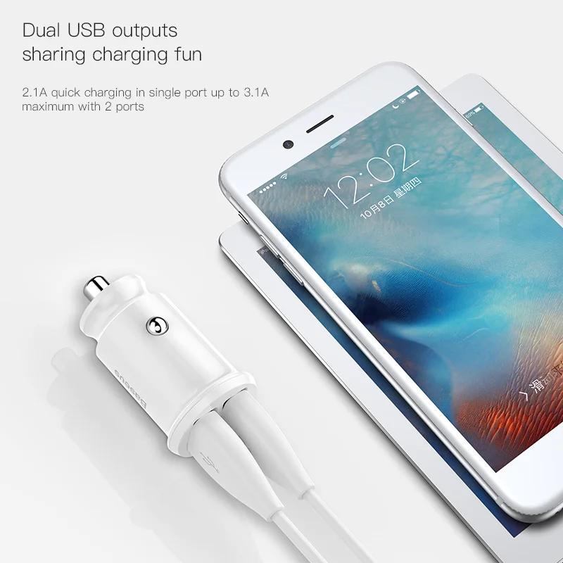 Автомобильное зарядное устройство Baseus, универсальное, компактное, для планшета мобильный телефон, GPS, автомобильное usb-устройство для зарядки телефона А, быстрое зарядное устройство USB, двойной адаптер для зарядки в автомобиле