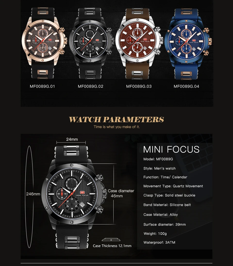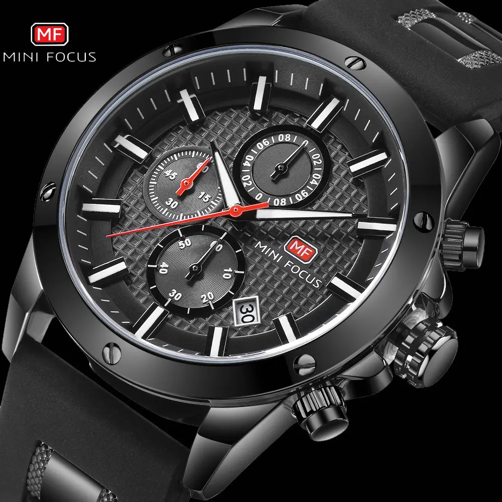 MINIFOCUS, военные повседневные часы, мужские кварцевые часы, водонепроницаемые, шикарный хронограф, календарь, резиновый ремешок, мужские часы, лучший бренд класса люкс