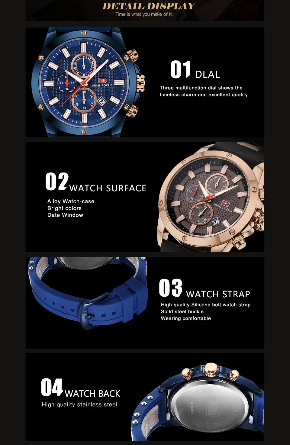 Material FeatureImported original watch movement, A-class strap & case material.