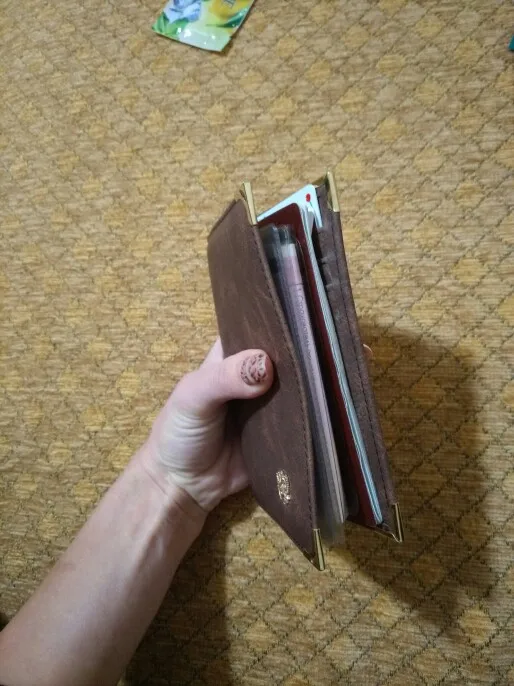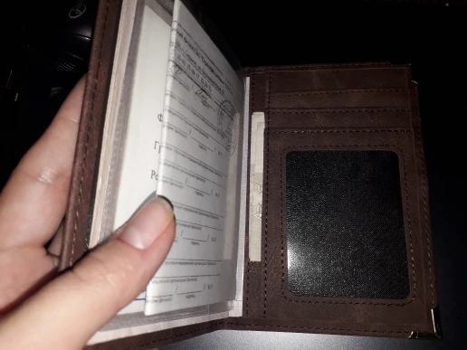 Доставка быстрая около двух недель. Страховку если сложить вместить можно, права и пластик хорошо влезает. В принципе я доволен, теперь все документы на авто в одеом месте.